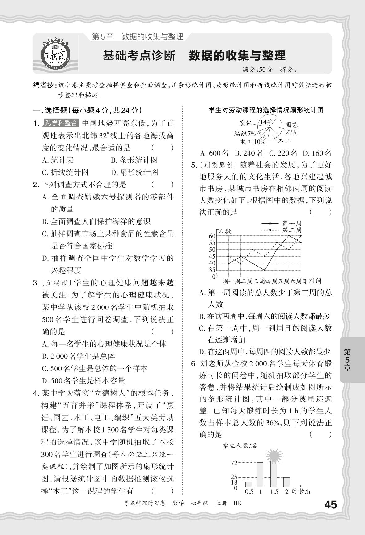 2024秋上册七年级数学沪科版 第5章 基础考点诊断 数据的收集与整理