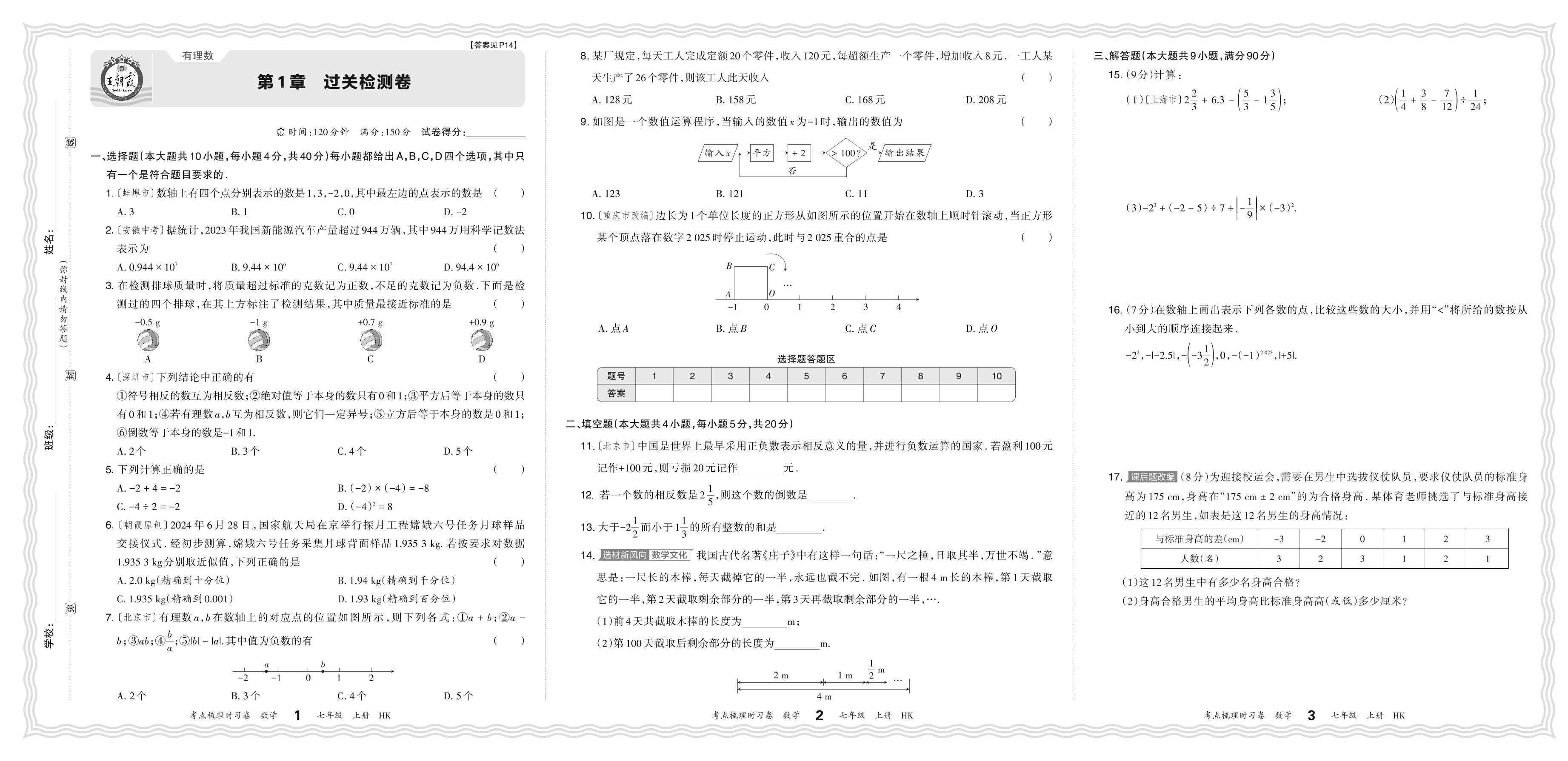 2024秋上册七年级数学沪科版 第1章 过关检测卷