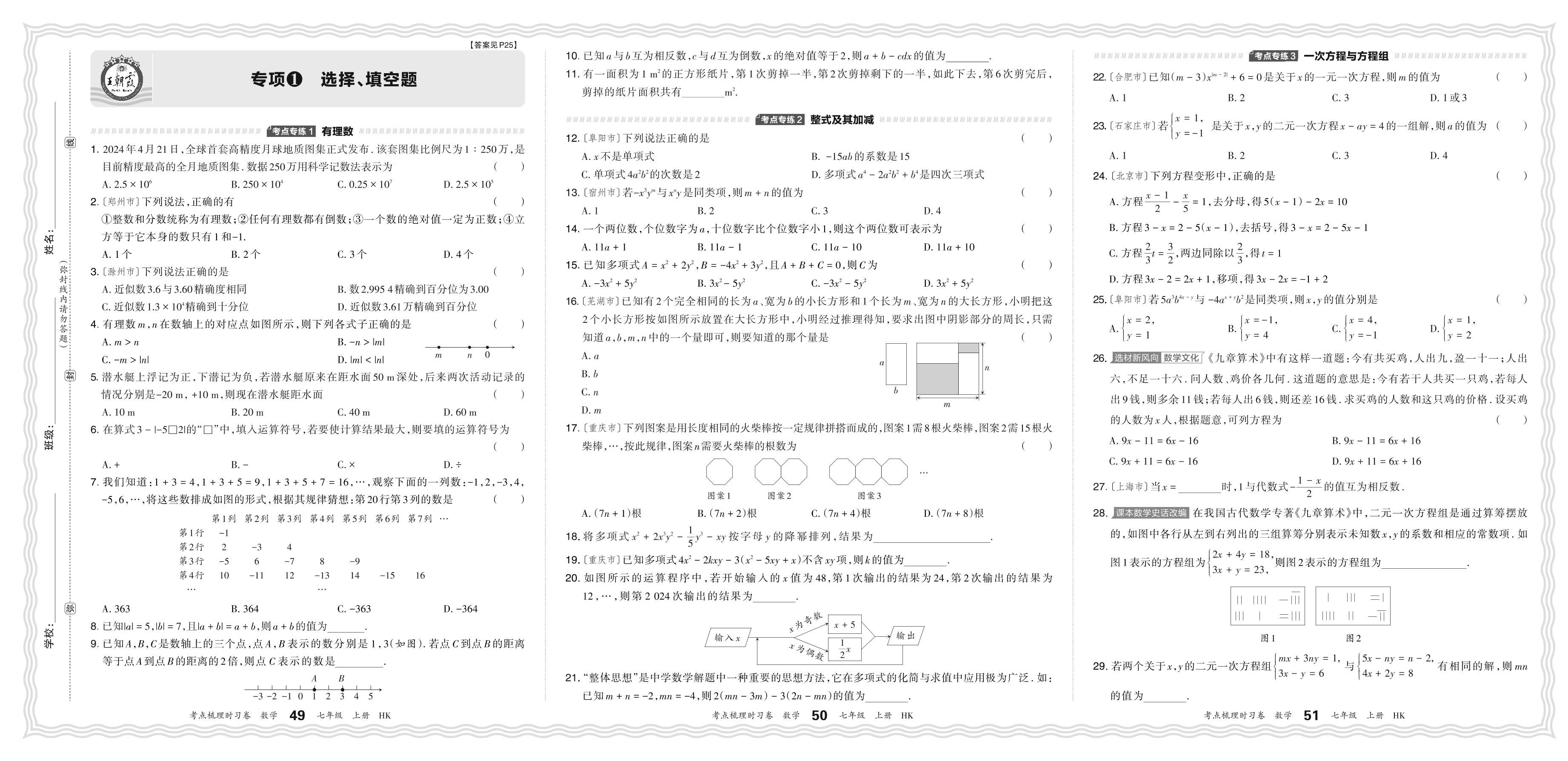 2024秋上册七年级数学沪科版 期末专项卷KD版·选择、填空题【1】