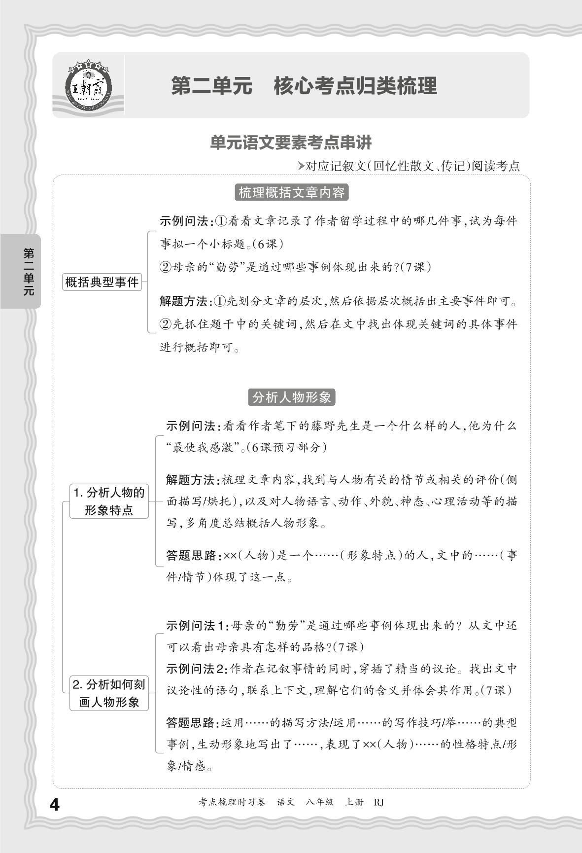 2024秋上册八年级语文人教版 考点梳理手册——第二单元 核心考点归类梳理