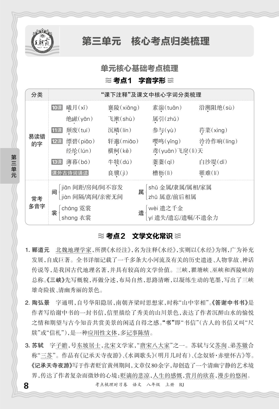 2024秋上册八年级语文人教版 考点梳理手册——第三单元 核心考点归类梳理