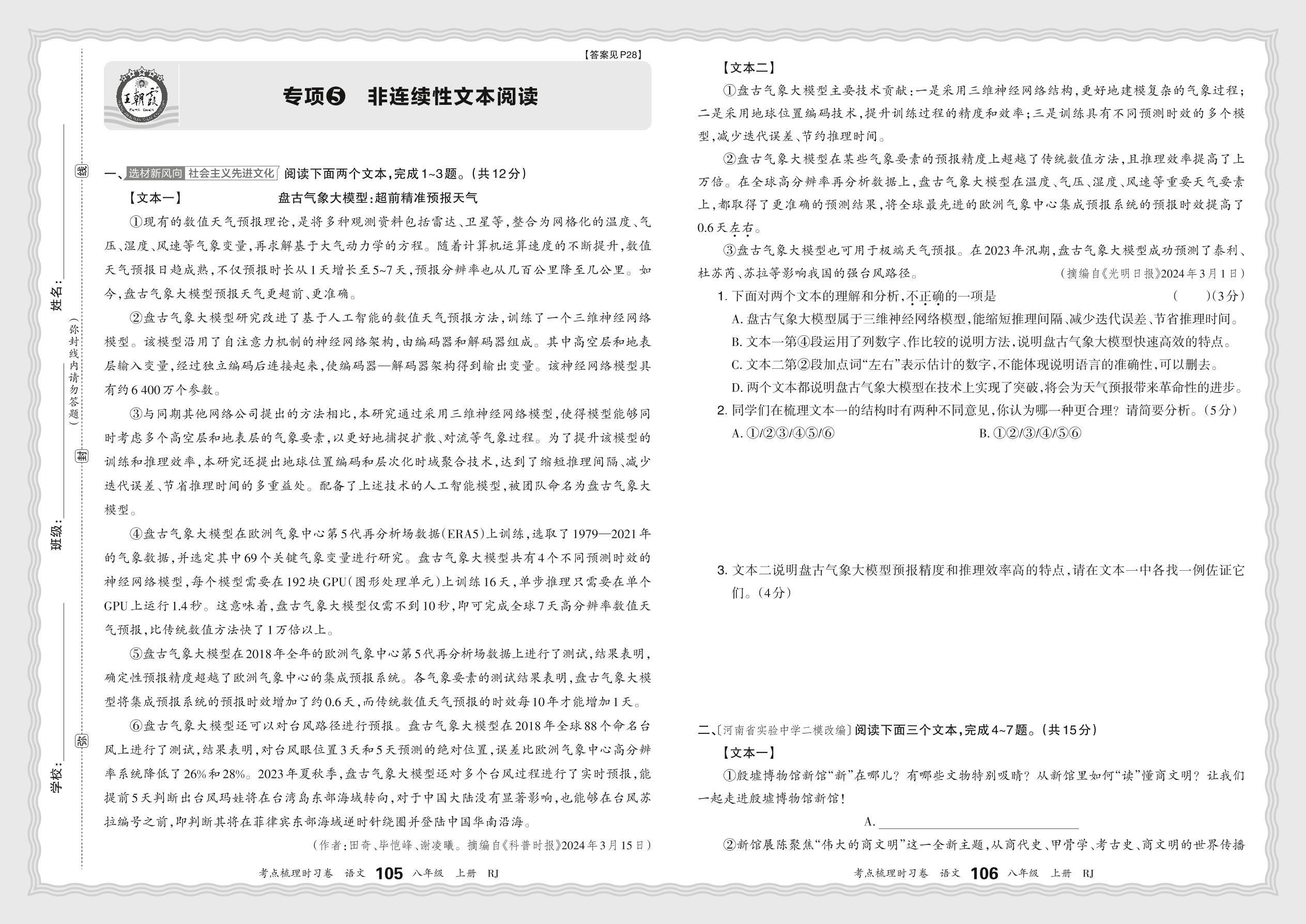 2024秋上册八年级语文人教版 期末专项卷KD版·非连续性文本阅读【5】