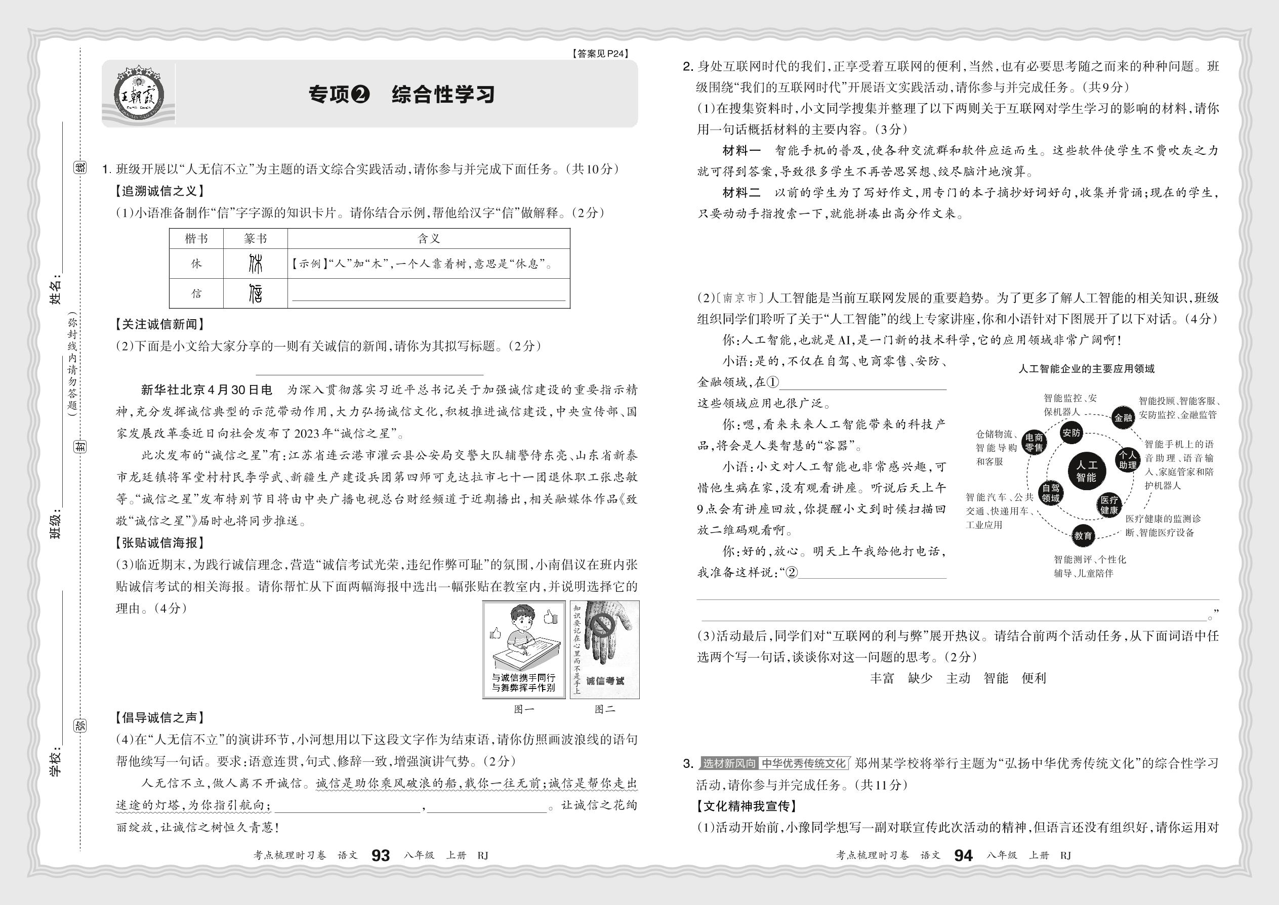 2024秋上册八年级语文人教版 期末专项卷KD版·综合性学习【2】