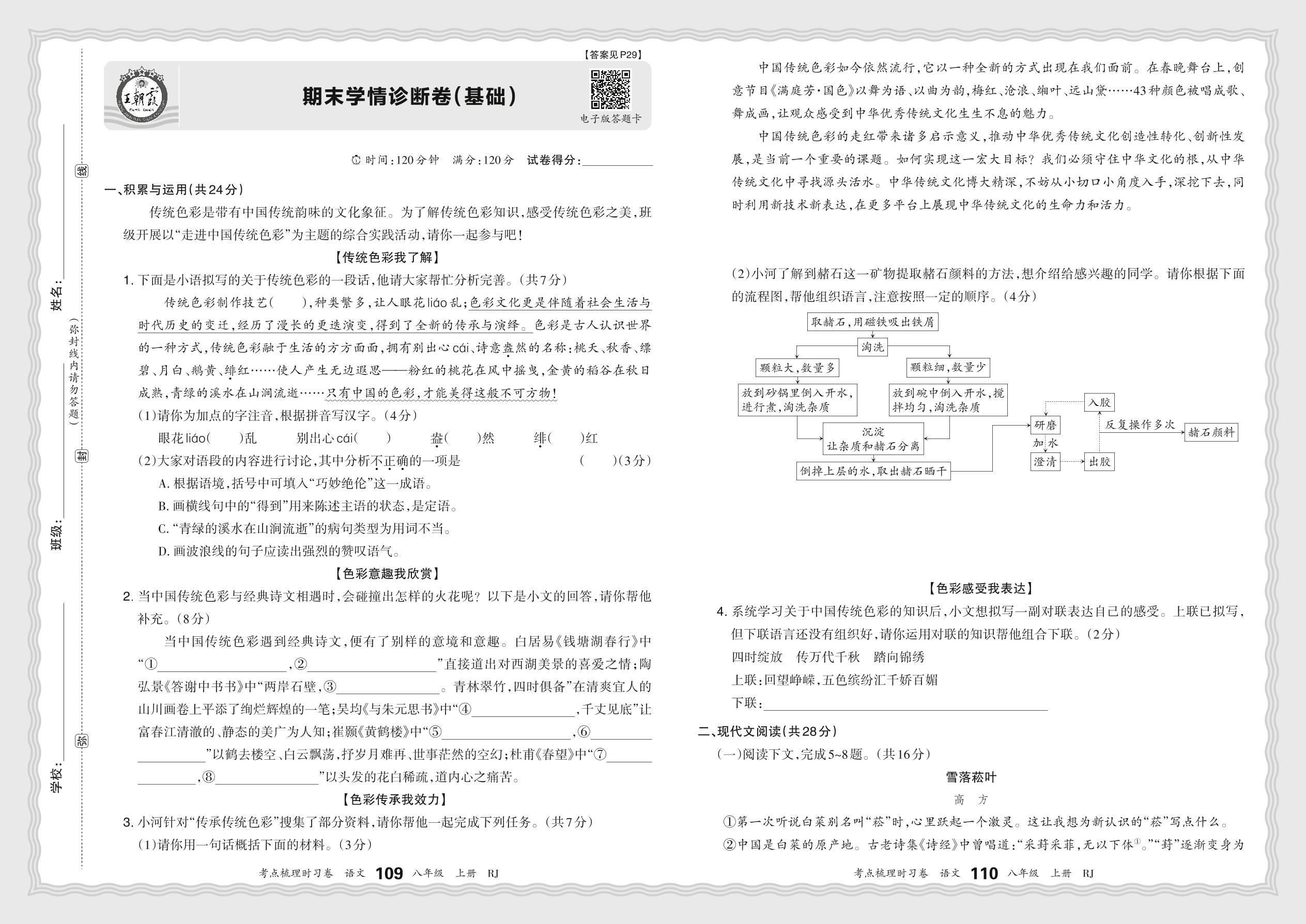 2024秋上册八年级语文人教版 期末学情诊断卷(基础)
