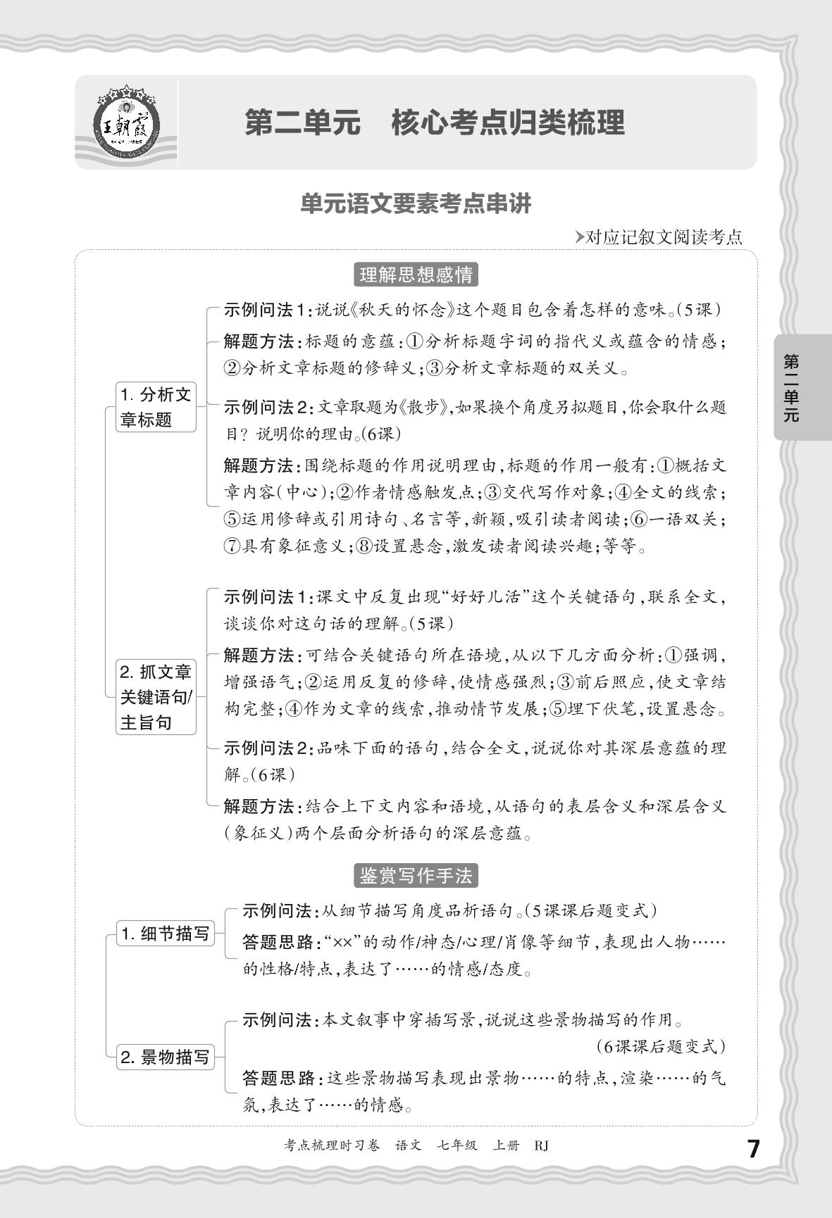 2024秋上册七年级语文人教版 考点梳理手册——第二单元 核心考点归类梳理