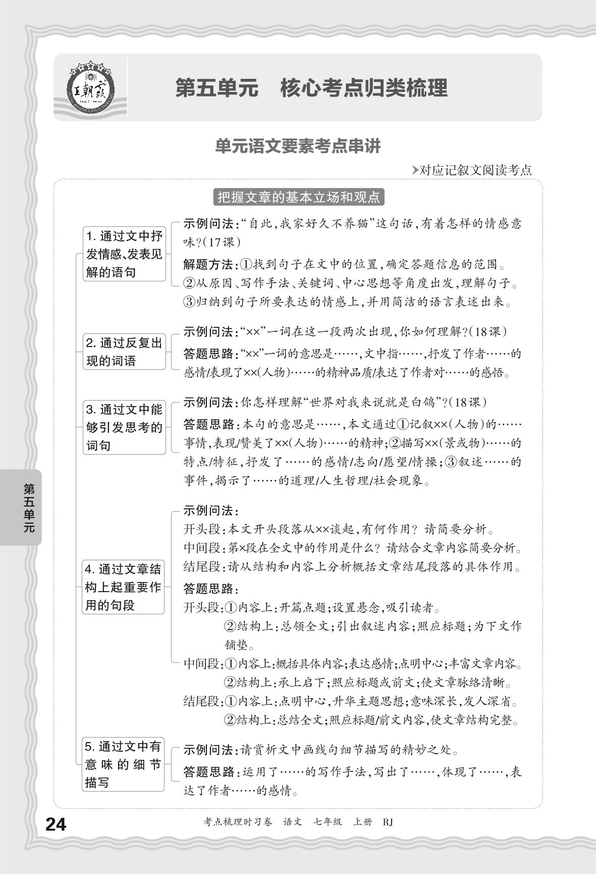 2024秋上册七年级语文人教版 考点梳理手册——第五单元 核心考点归类梳理
