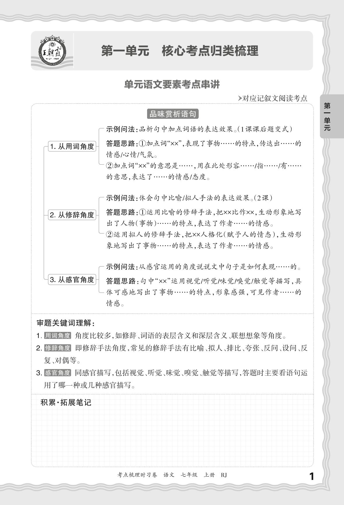2024秋上册七年级语文人教版 考点梳理手册——第一单元 核心考点归类梳理