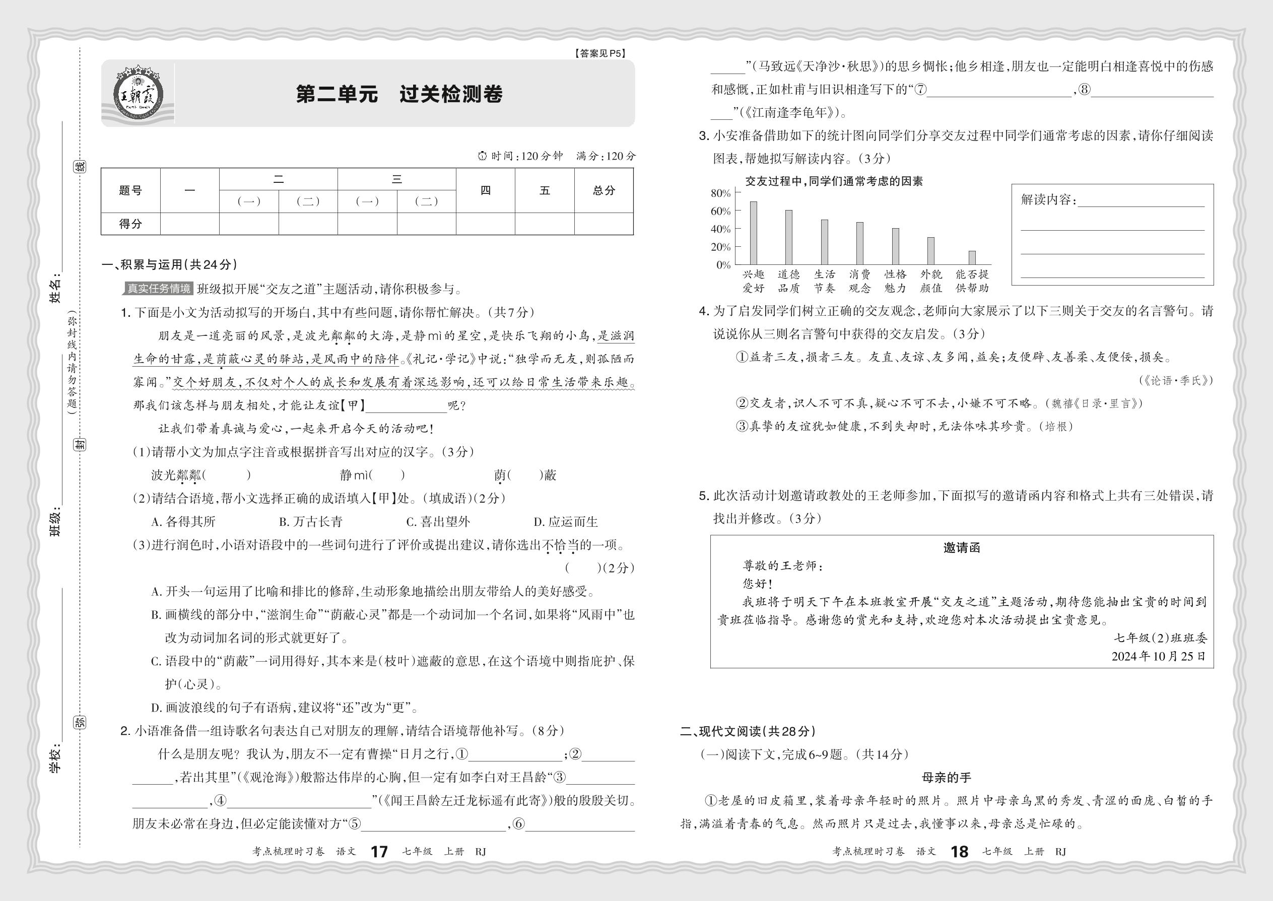2024秋上册七年级语文人教版 第二单元 过关检测卷