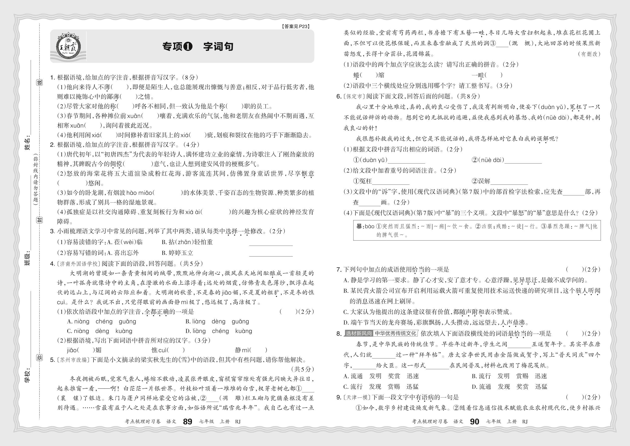 2024秋上册七年级语文人教版 期末专项卷KD版·字词句【1】