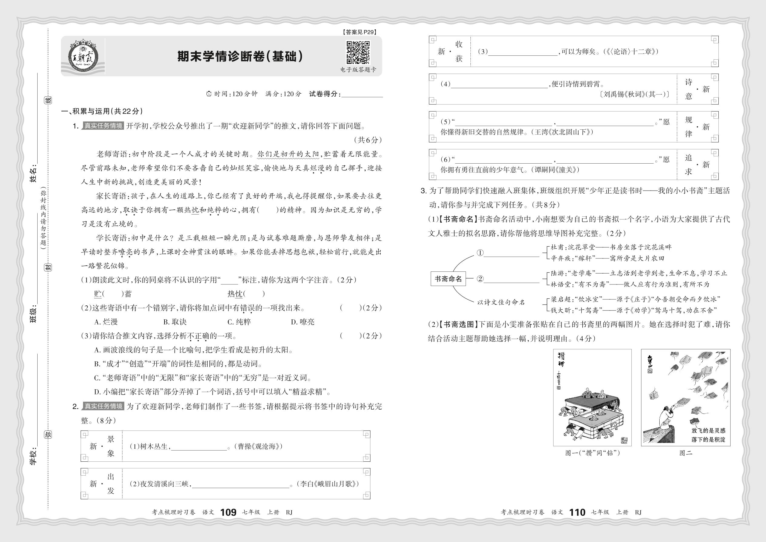 2024秋上册七年级语文人教版 期末学情诊断卷(基础)