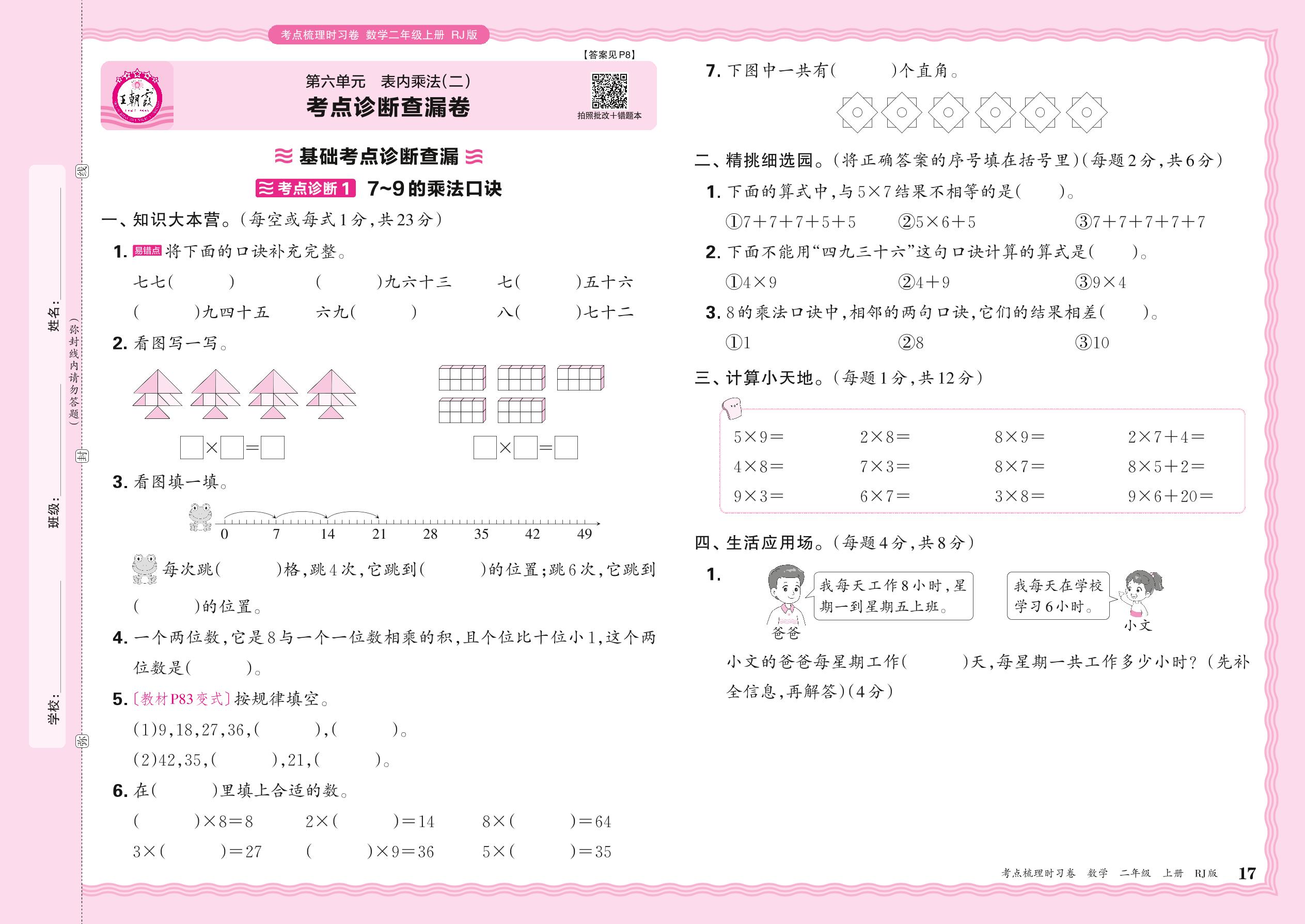 2024秋上册二年级数学人教版 第六单元 考点诊断查漏卷