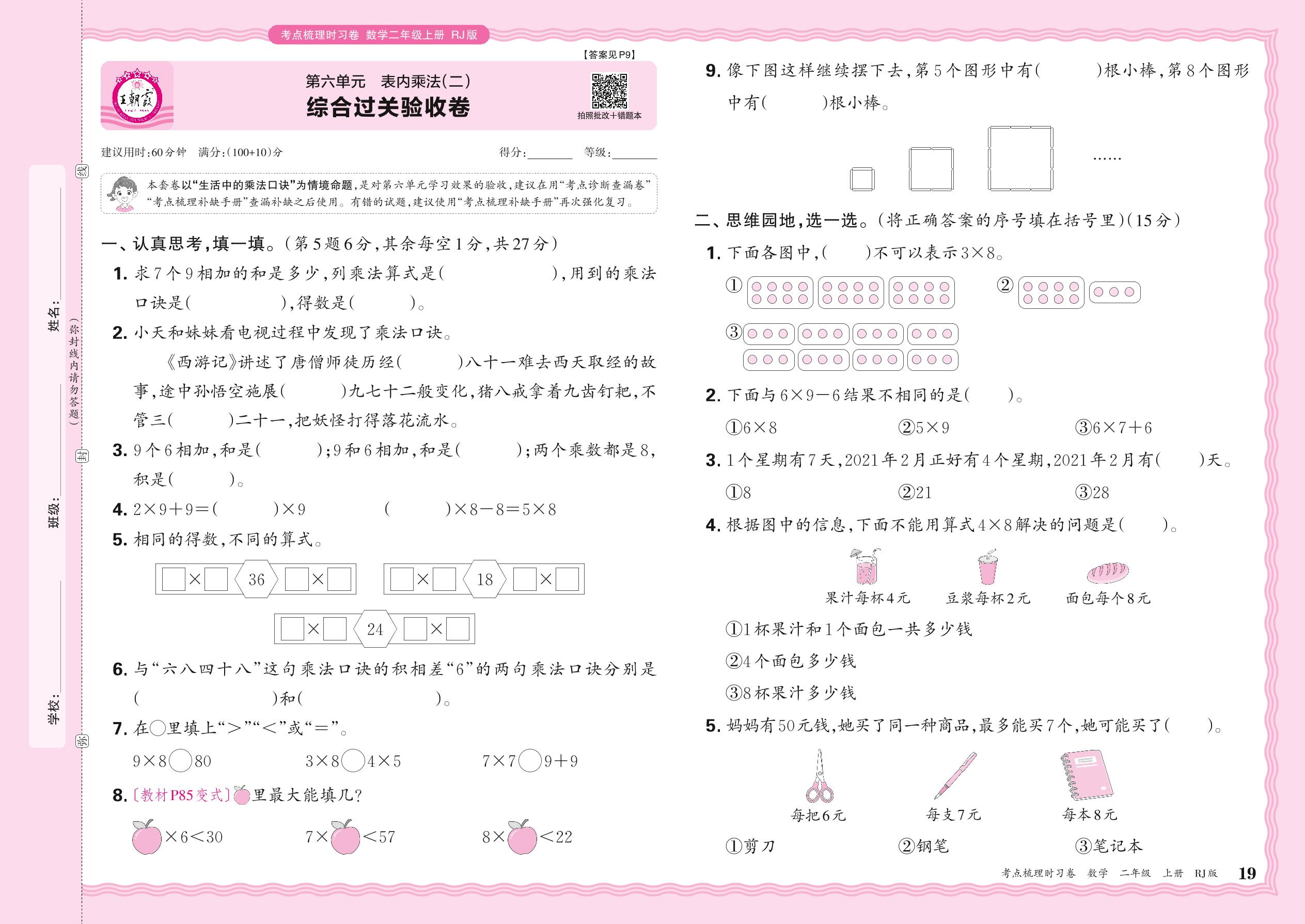 2024秋上册二年级数学人教版 第六单元 综合过关验收卷