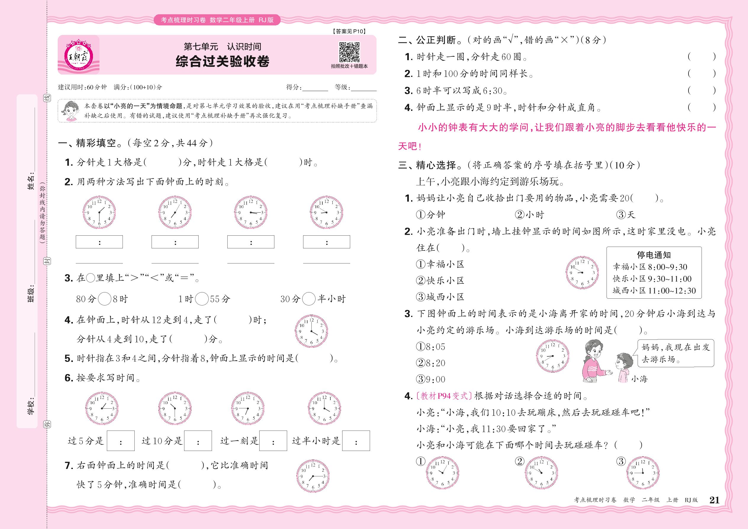 2024秋上册二年级数学人教版 第七单元 综合过关验收卷