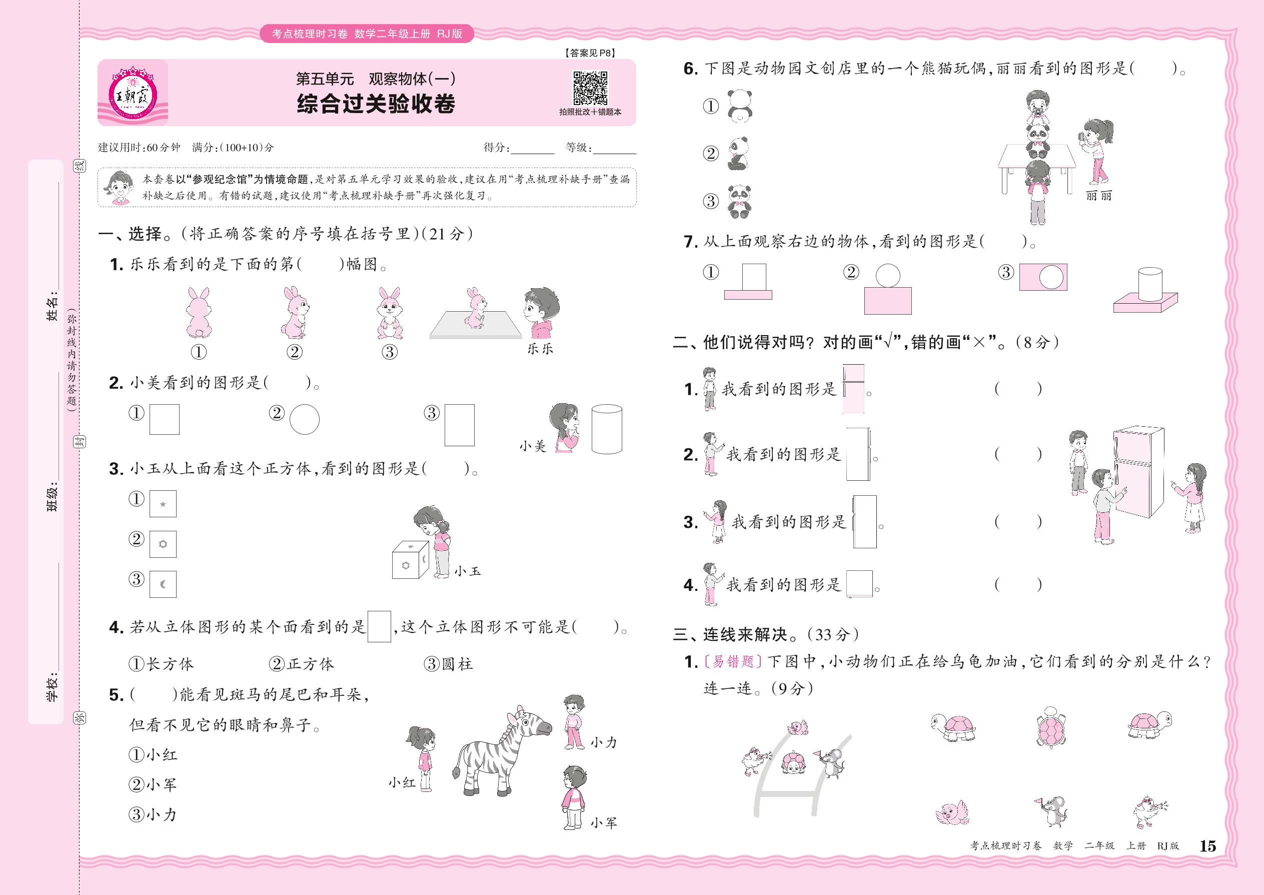 2024秋上册二年级数学人教版 第五单元 综合过关验收卷