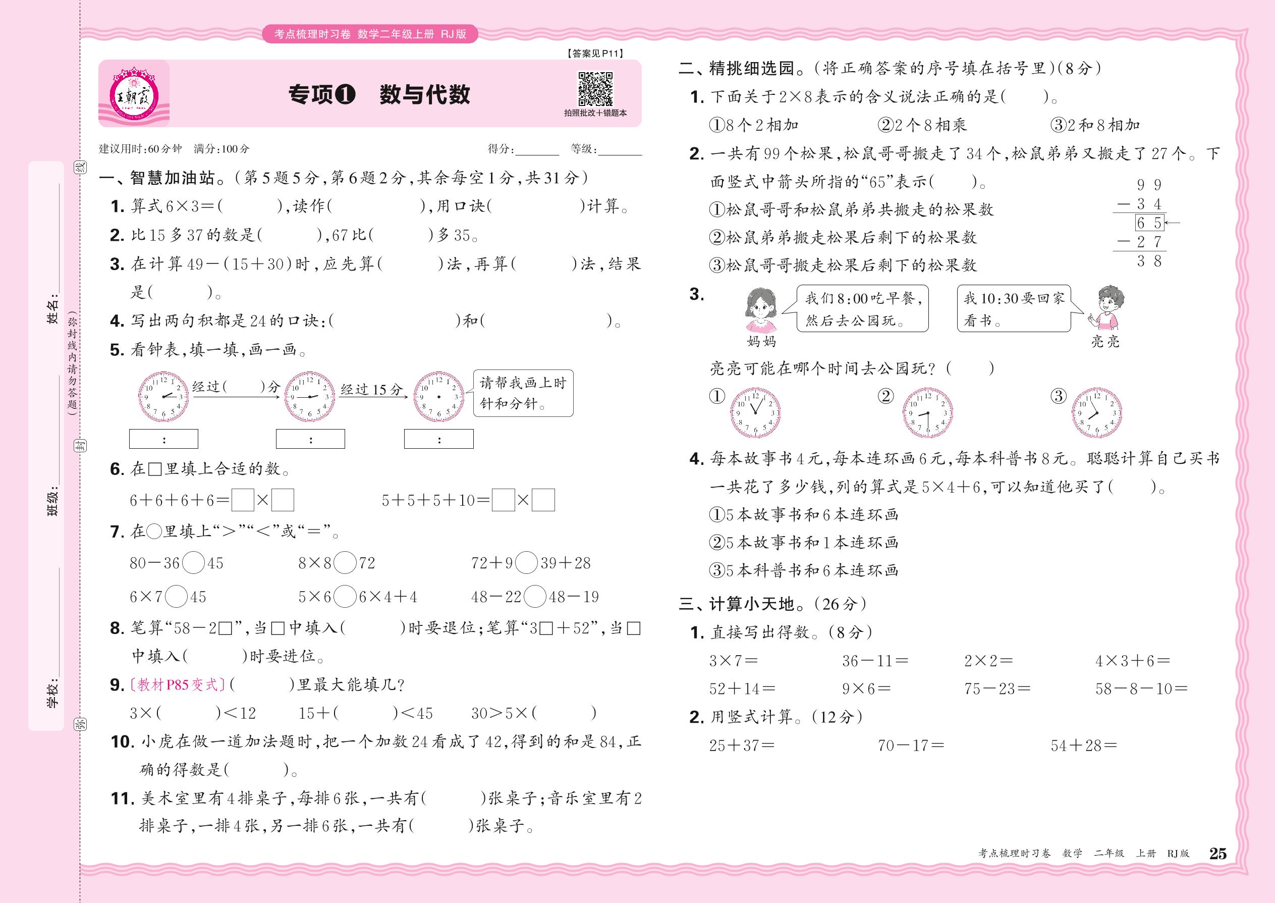 2024秋上册二年级数学人教版 期末专项卷KD版·数与代数【1】