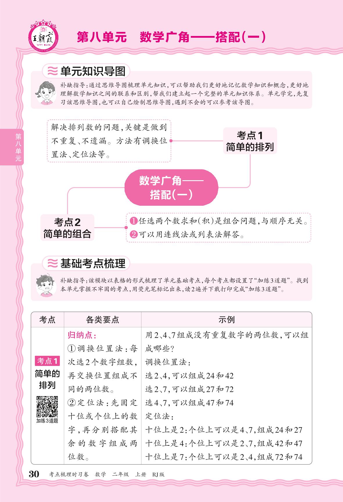2024秋上册二年级数学人教版 考点梳理补缺手册——第八单元 数学广角 搭配(一)