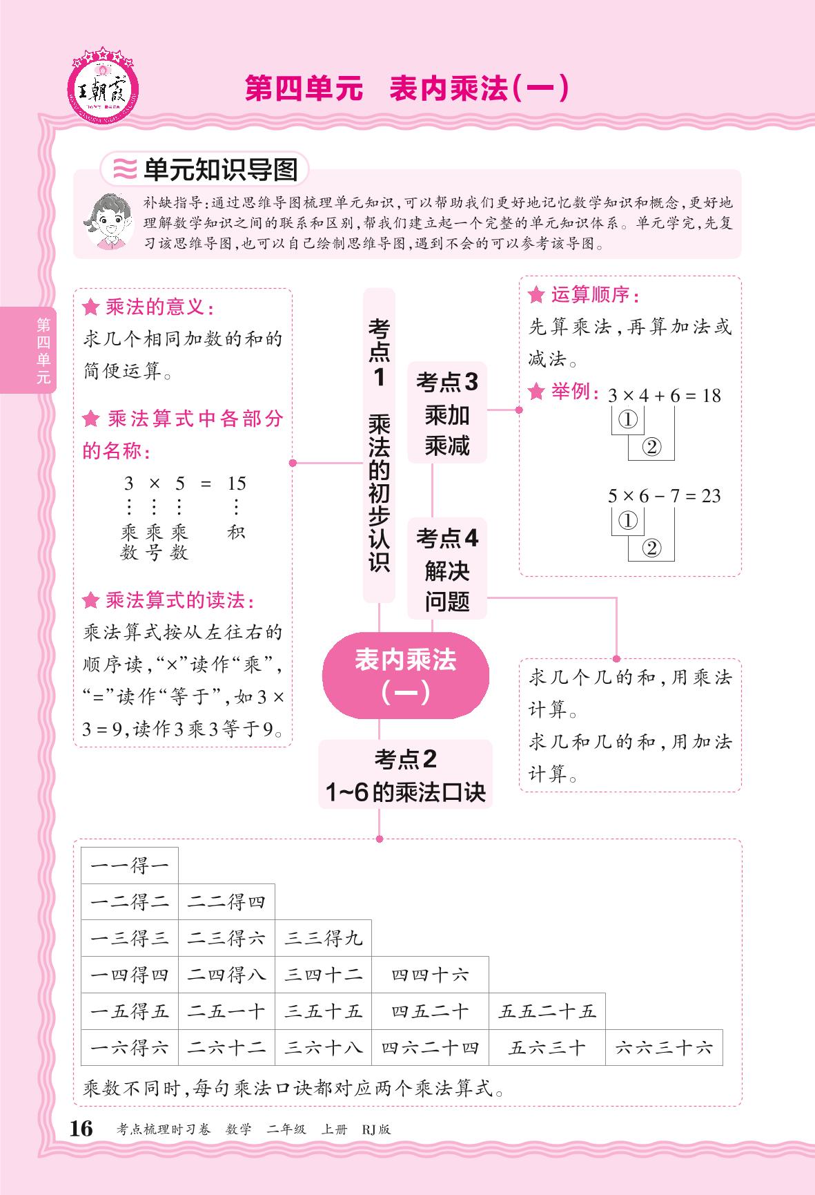 2024秋上册二年级数学人教版 考点梳理补缺手册——第四单元 表内乘法(一)