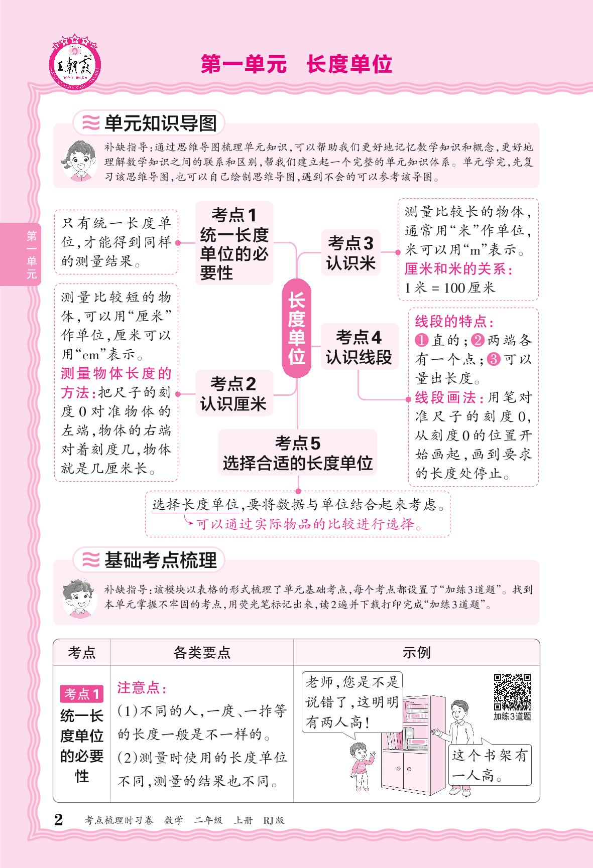 2024秋上册二年级数学人教版 考点梳理补缺手册——第一单元 长度单位