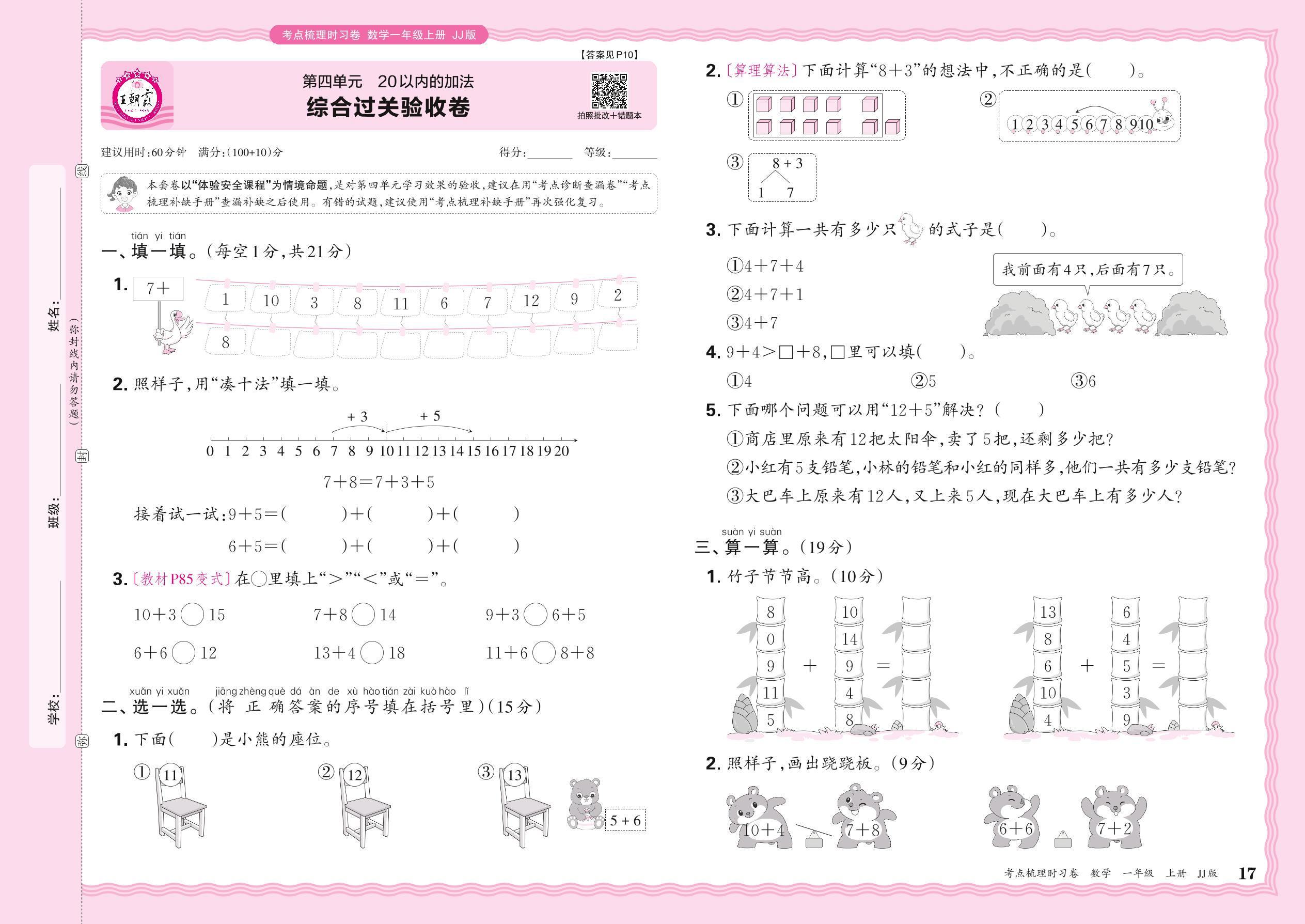 2024秋上册一年级数学冀教版 第四单元 综合过关验收卷