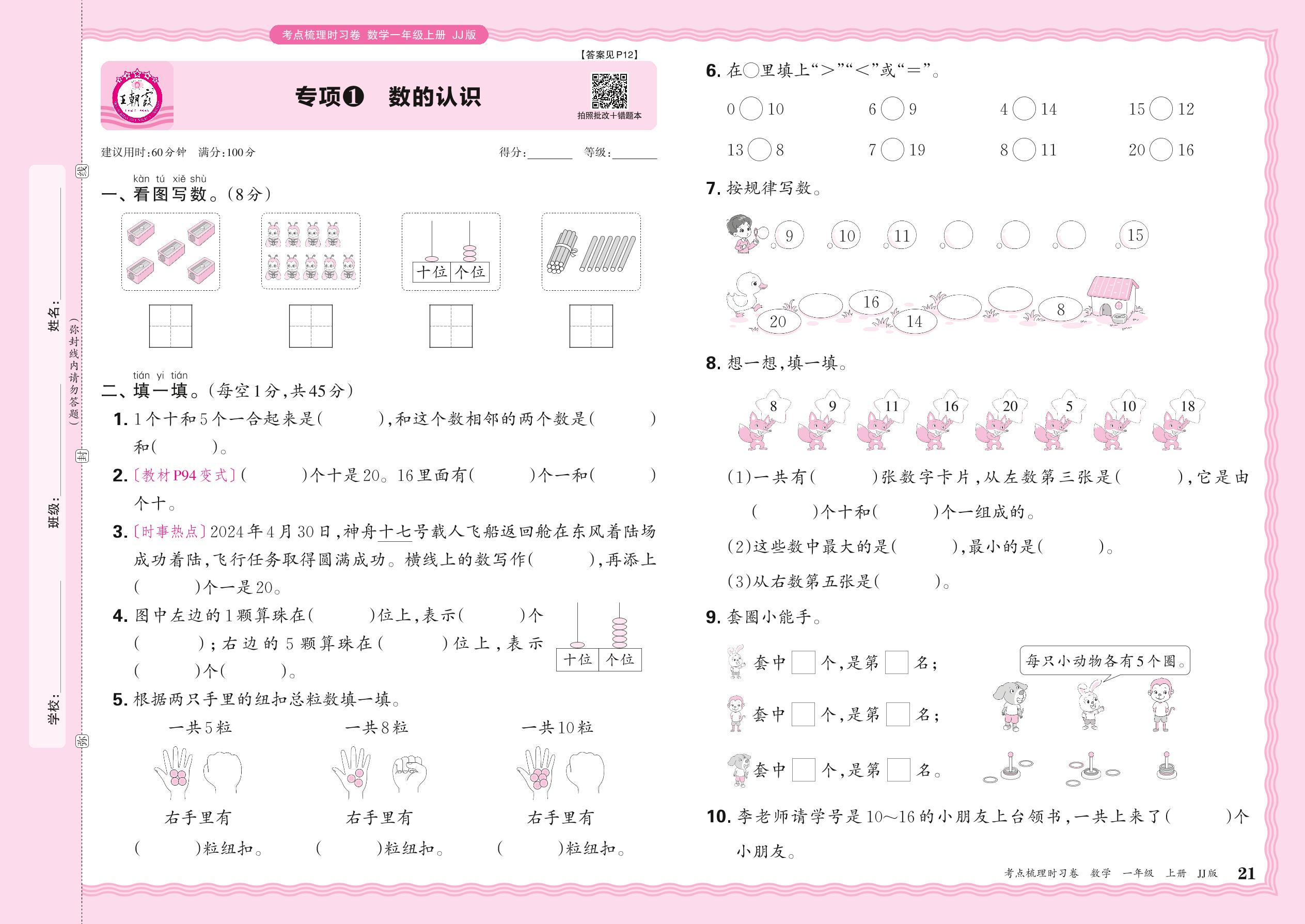 2024秋上册一年级数学冀教版 期末专项卷KD版·数的认识【1】