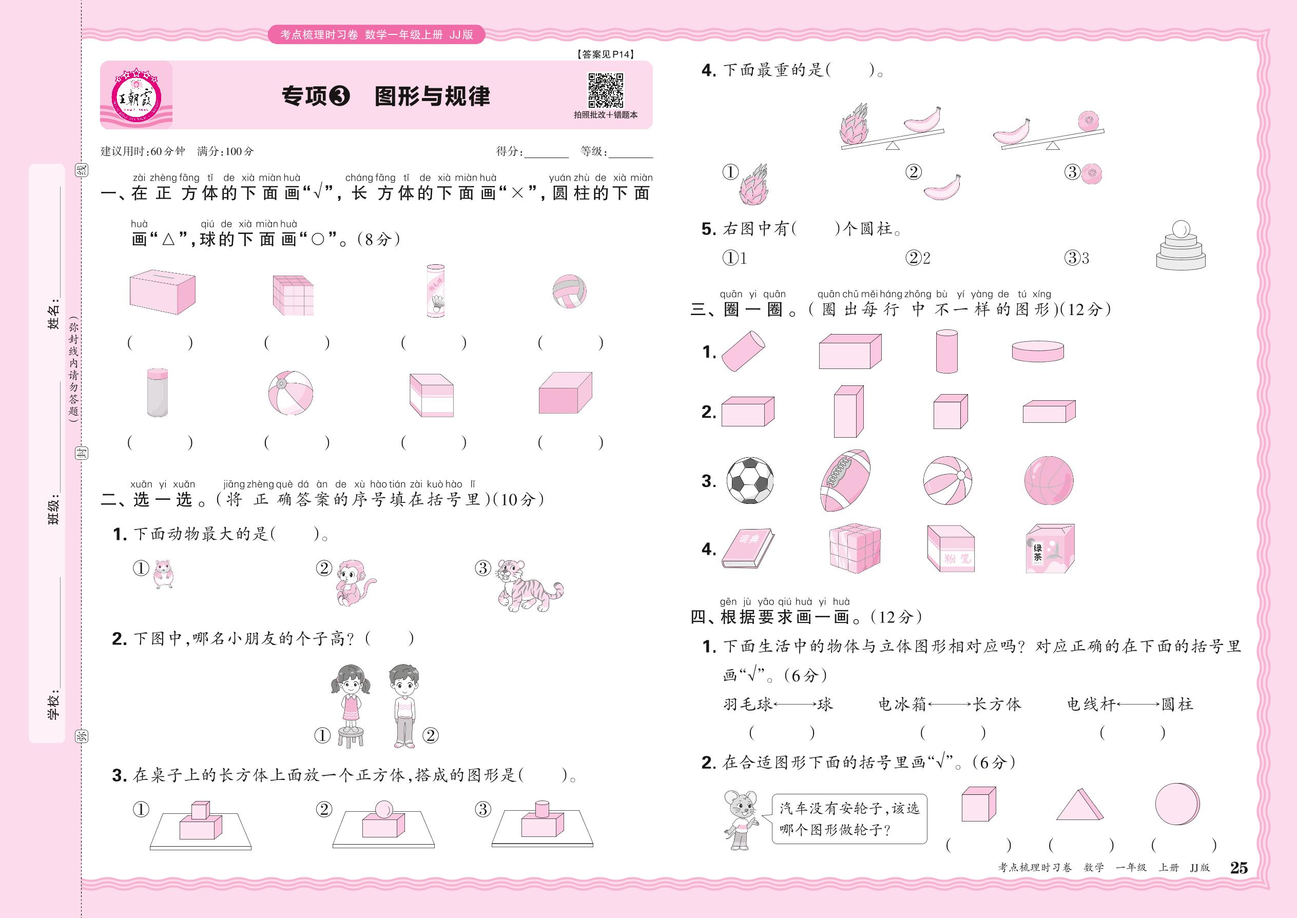 2024秋上册一年级数学冀教版 期末专项卷KD版·图形与规律【3】