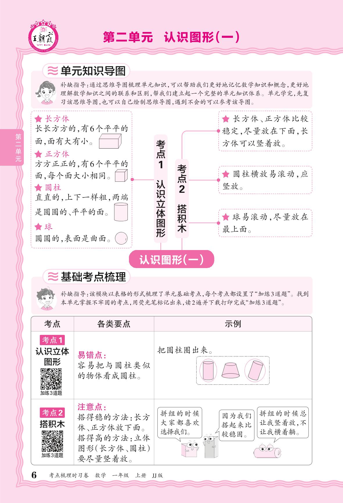 2024秋上册一年级数学冀教版 考点梳理补缺手册——第二单元 认识图形(一)