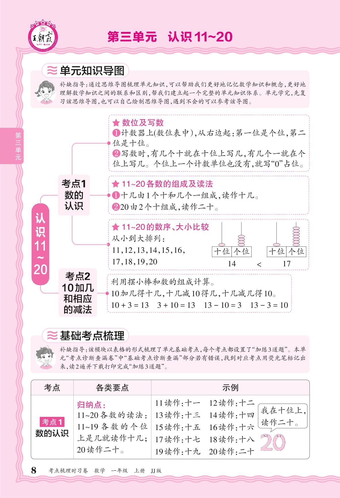 2024秋上册一年级数学冀教版 考点梳理补缺手册——第三单元 认识11~20