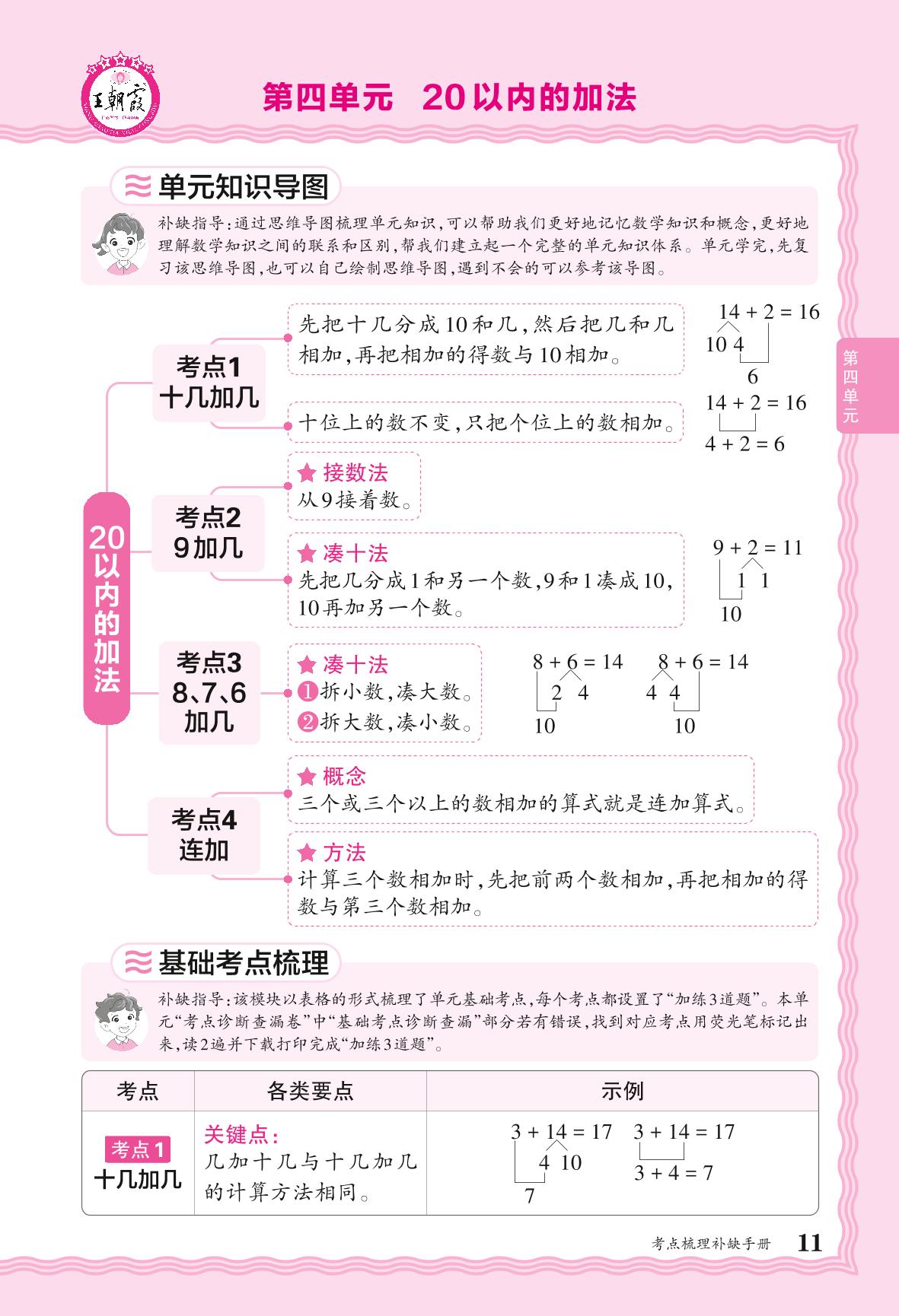 2024秋上册一年级数学冀教版 考点梳理补缺手册——第四单元 20以内的加法