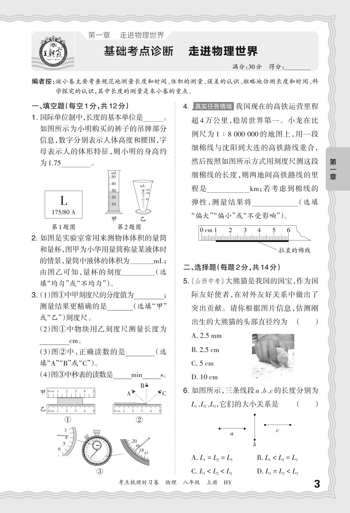 2024秋上册八年级物理沪粤版 第一章 基础考点诊断 走进物理世界
