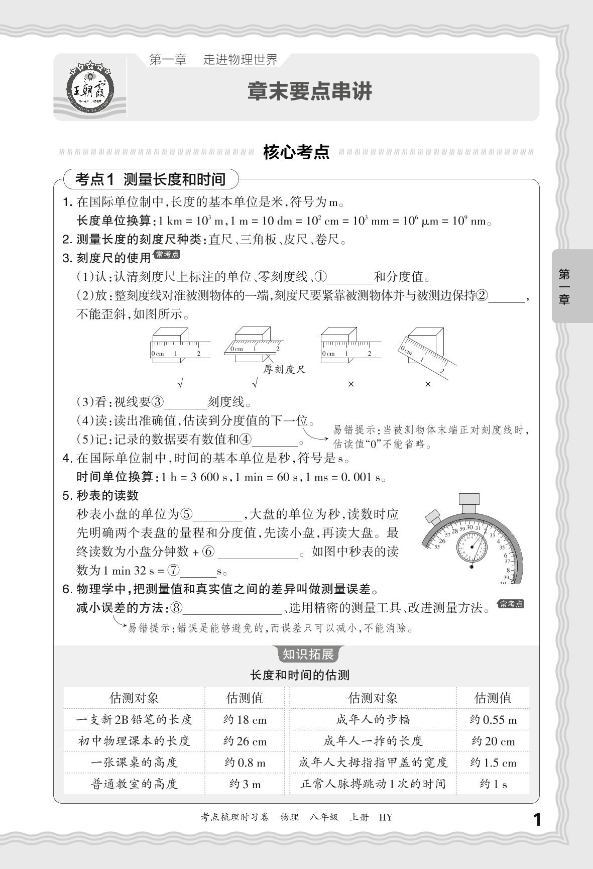2024秋上册八年级物理沪粤版 第一章 章末要点串讲