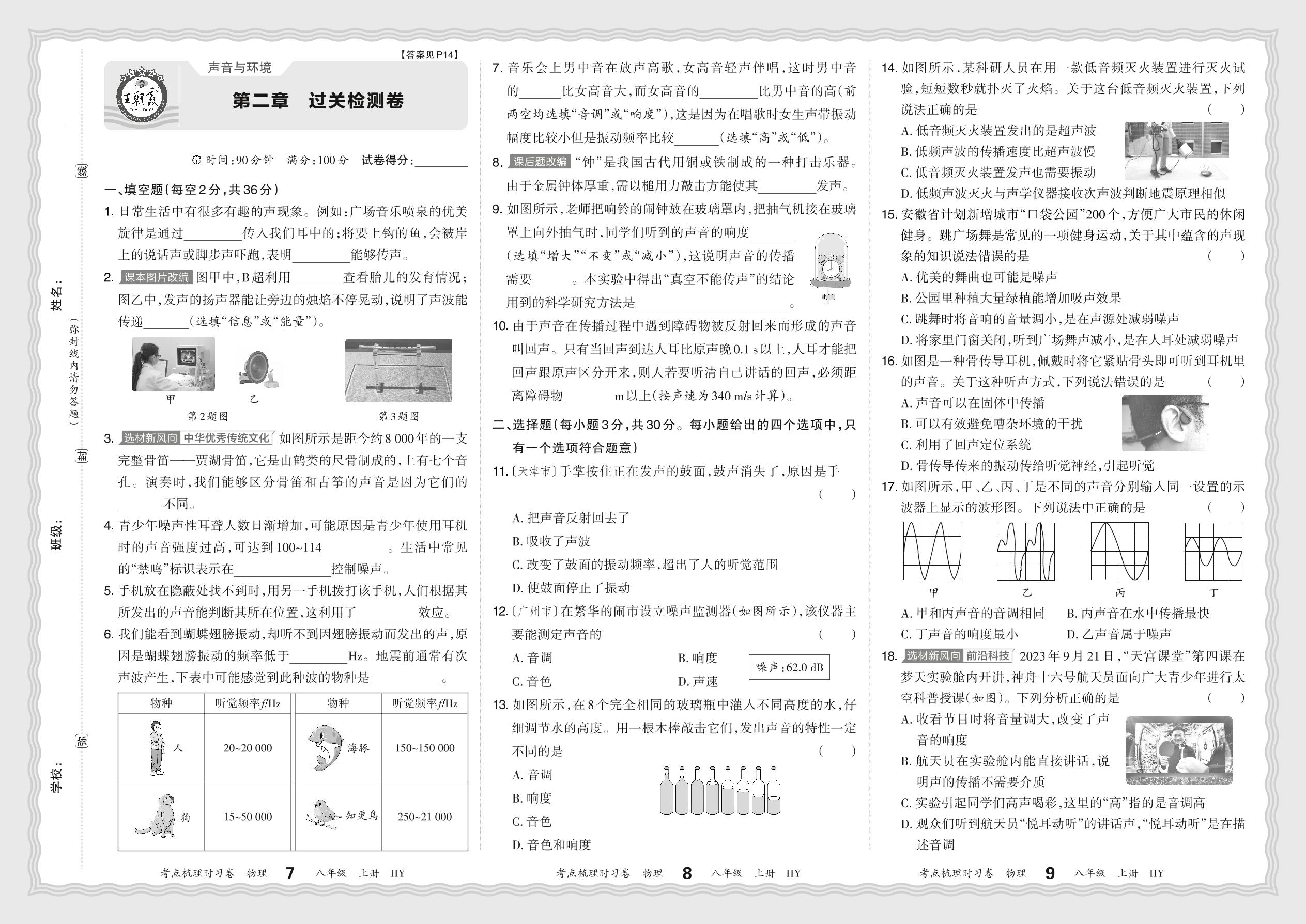 2024秋上册八年级物理沪粤版 第二章 过关检测卷
