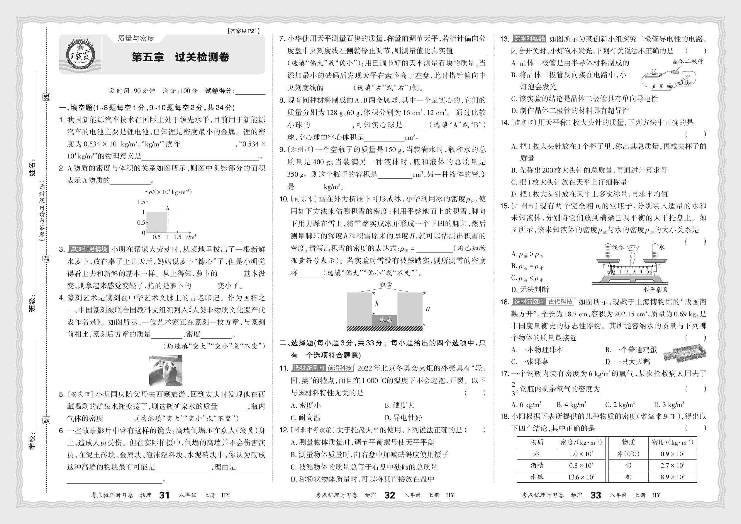 八年级物理沪粤版(2024)上册单元卷