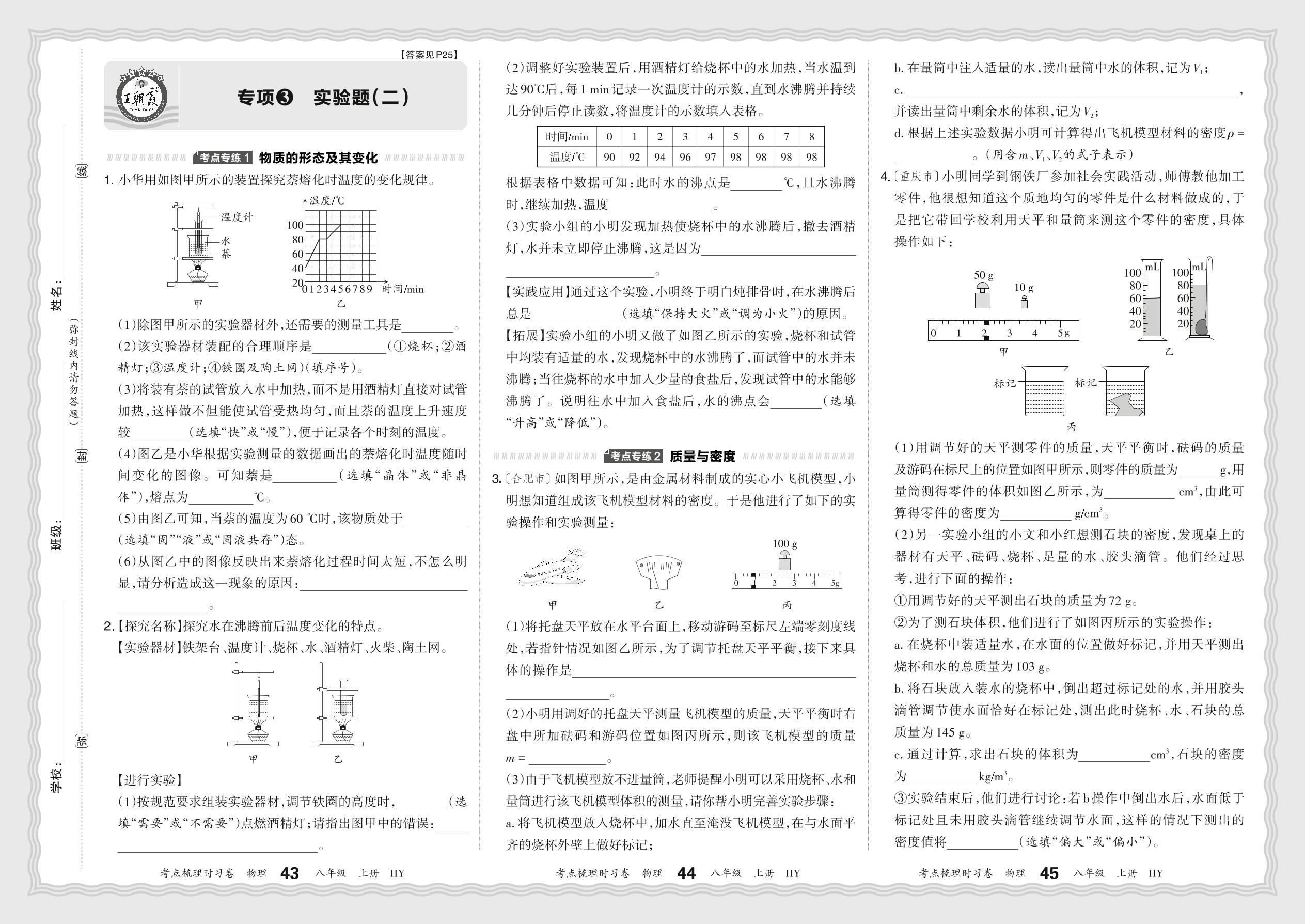 2024秋上册八年级物理沪粤版 期末专项卷KD版·实验题(二)【3】