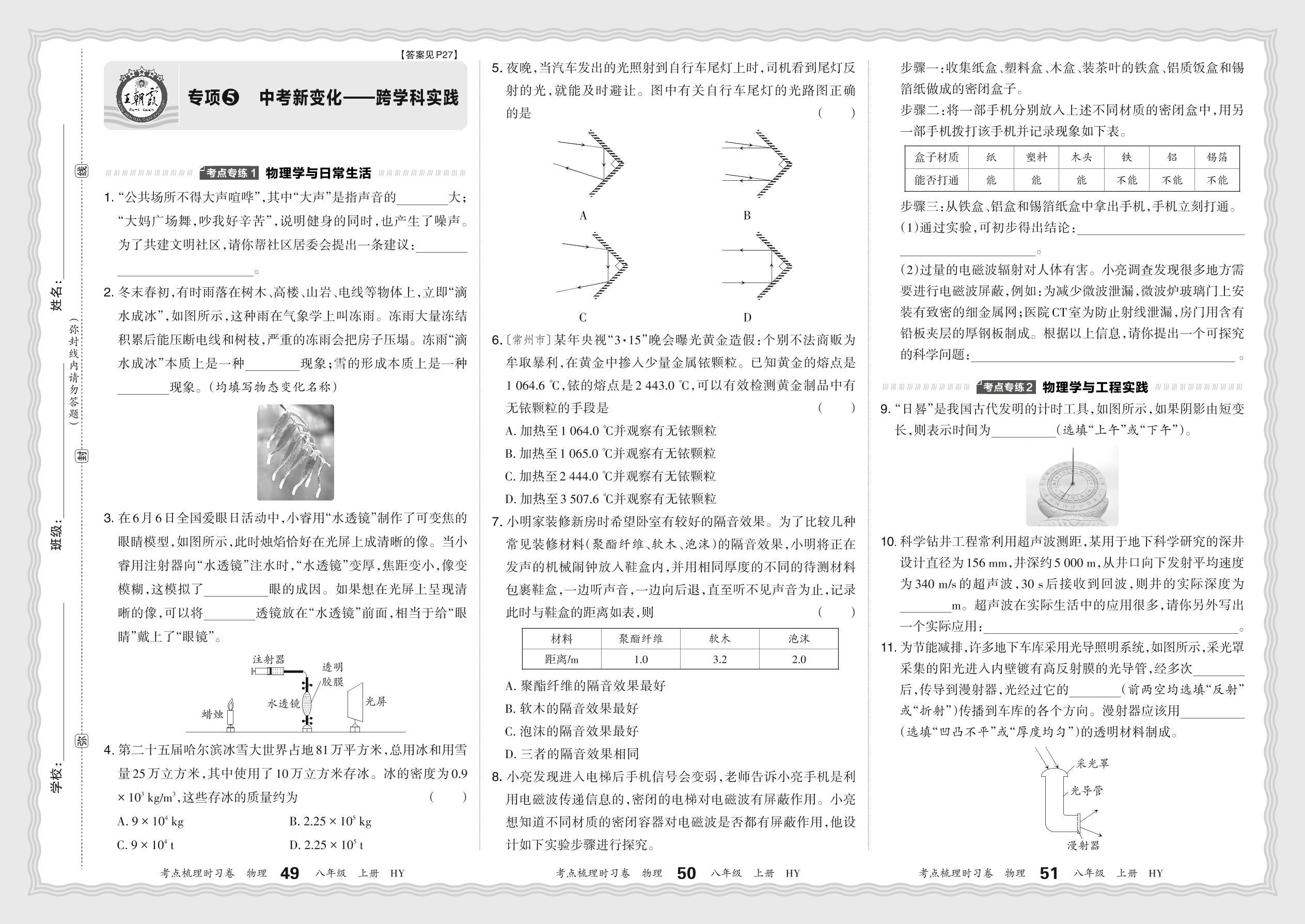 2024秋上册八年级物理沪粤版 期末专项卷KD版·中考新变化——跨学科实践【5】