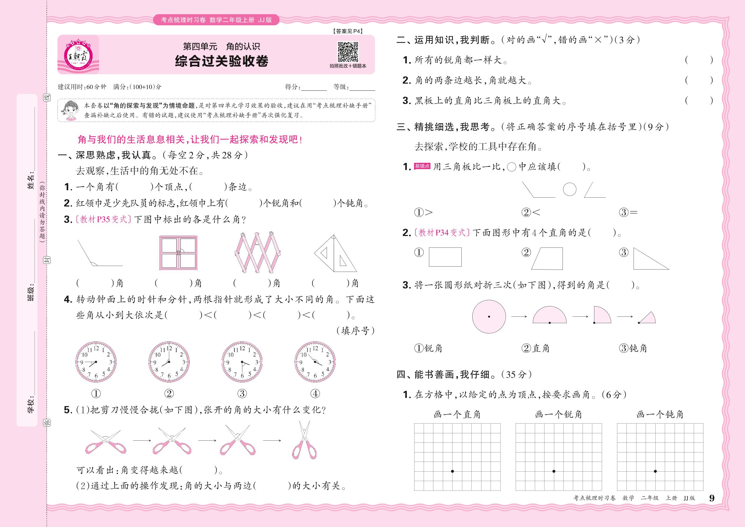 2024秋上册二年级数学冀教版 第四单元 综合过关验收卷