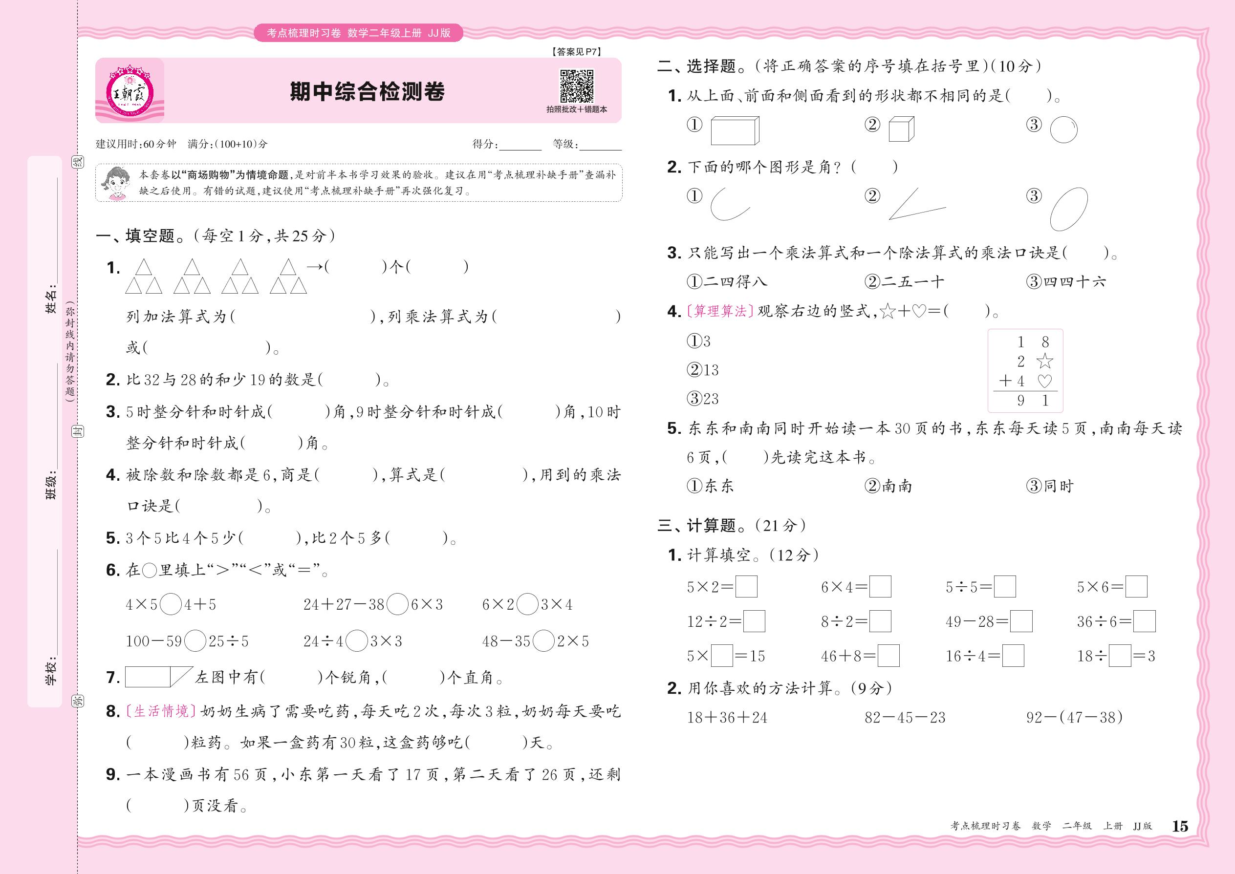 2024秋上册二年级数学冀教版 期中综合检测卷