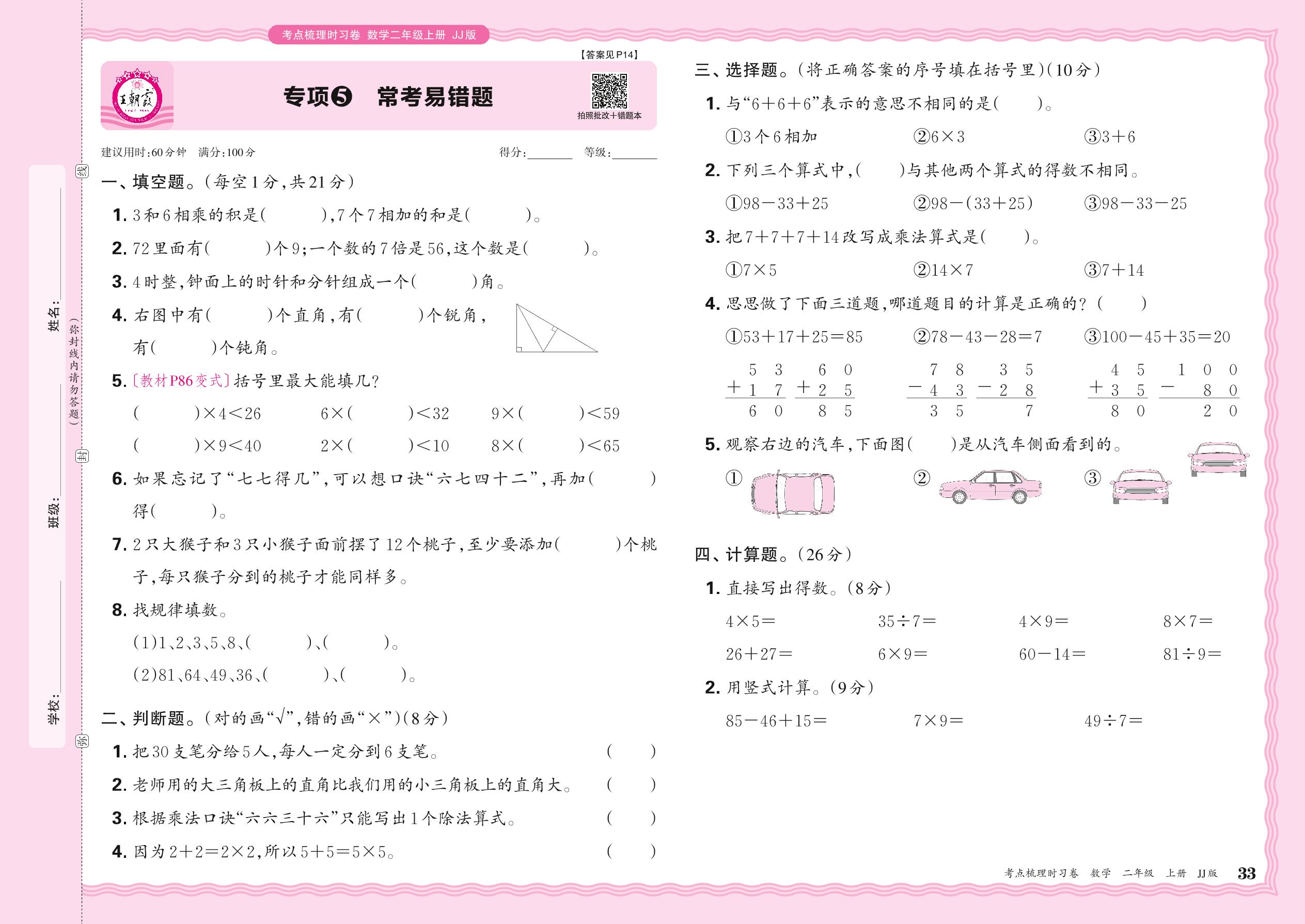 2024秋上册二年级数学冀教版 期末专项卷KD版·常考易错题【5】