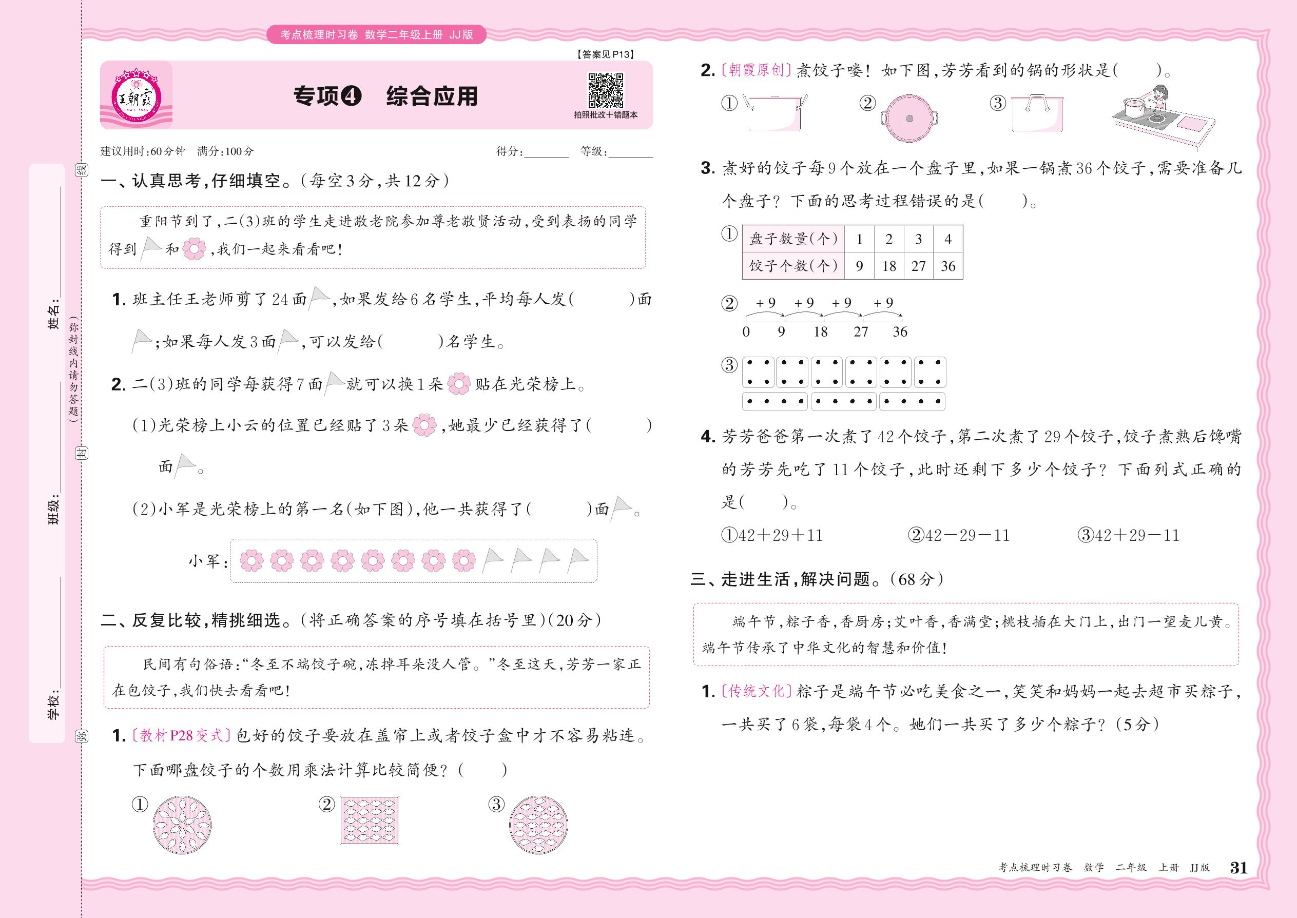 2024秋上册二年级数学冀教版 期末专项卷KD版·综合应用【4】