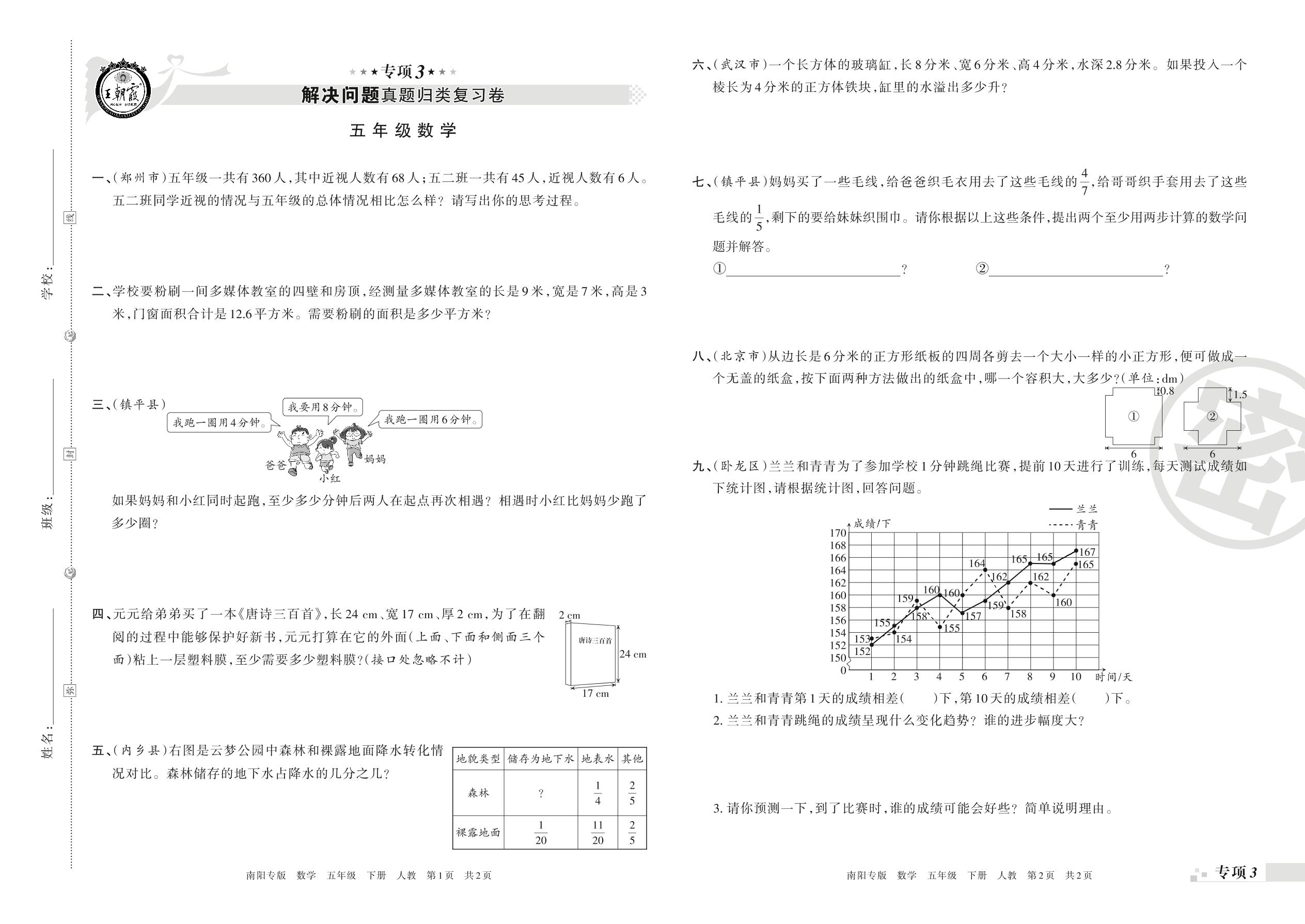 王朝霞期末专项卷——解决问题真题归类复习、新颖题速递:生活与数学五年级下册数学(人教版)_R211208155335422【0】