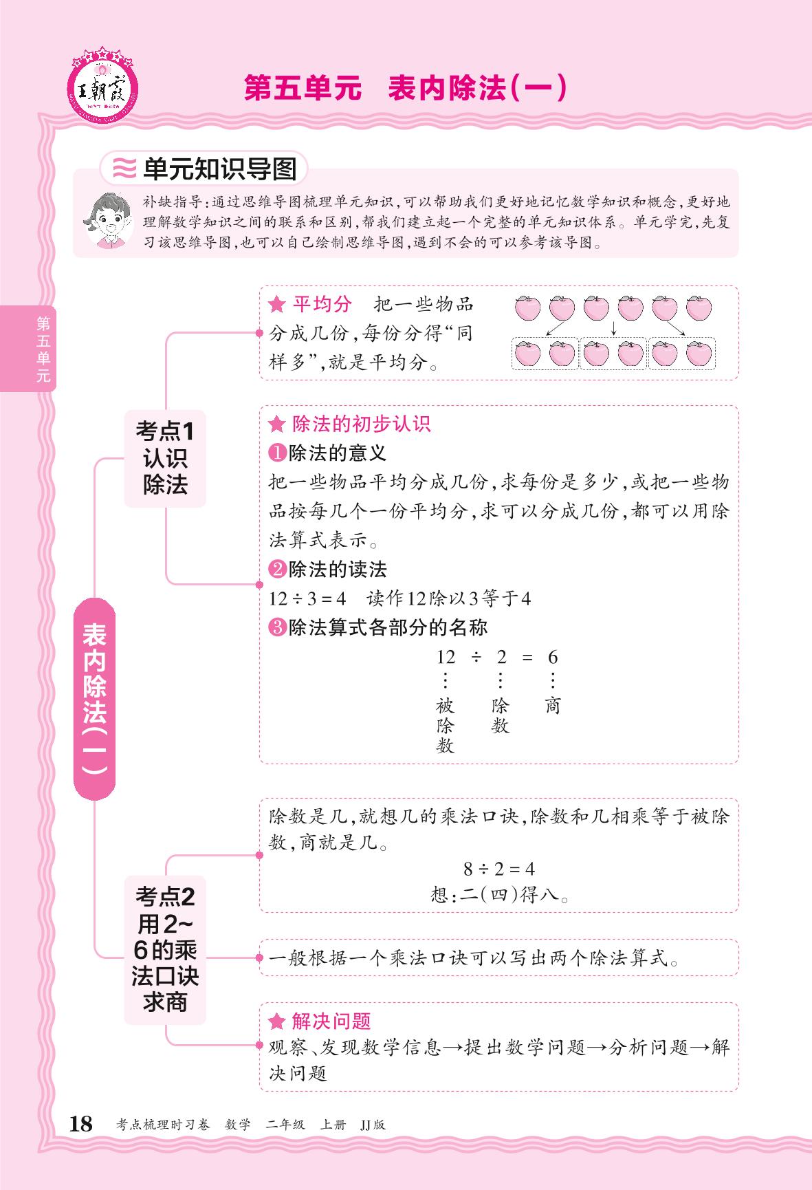 2024秋上册二年级数学冀教版 考点梳理补缺手册——第五单元 表内除法(一)
