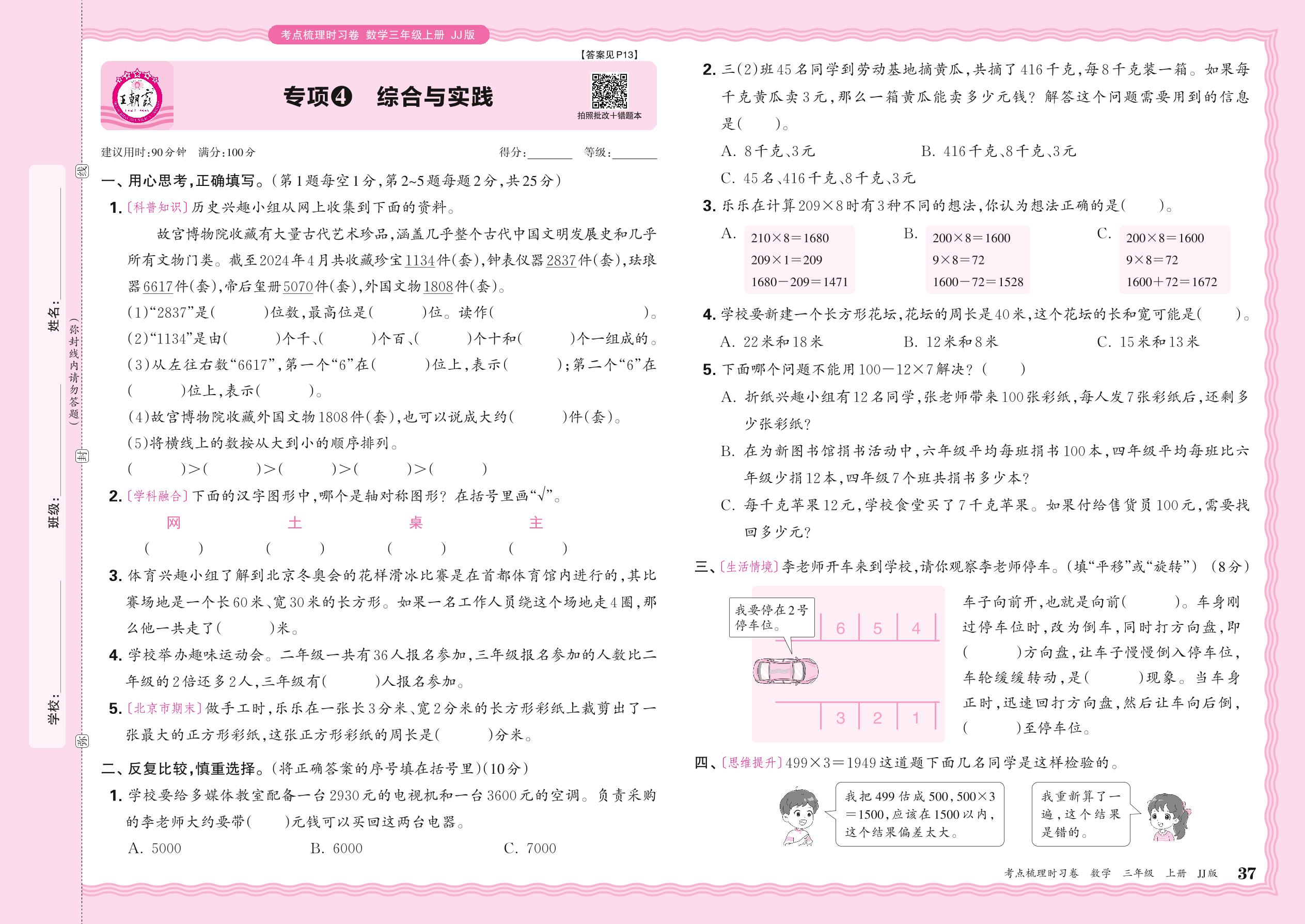 2024秋上册三年级数学冀教版 期末专项卷KD版·综合与实践【4】