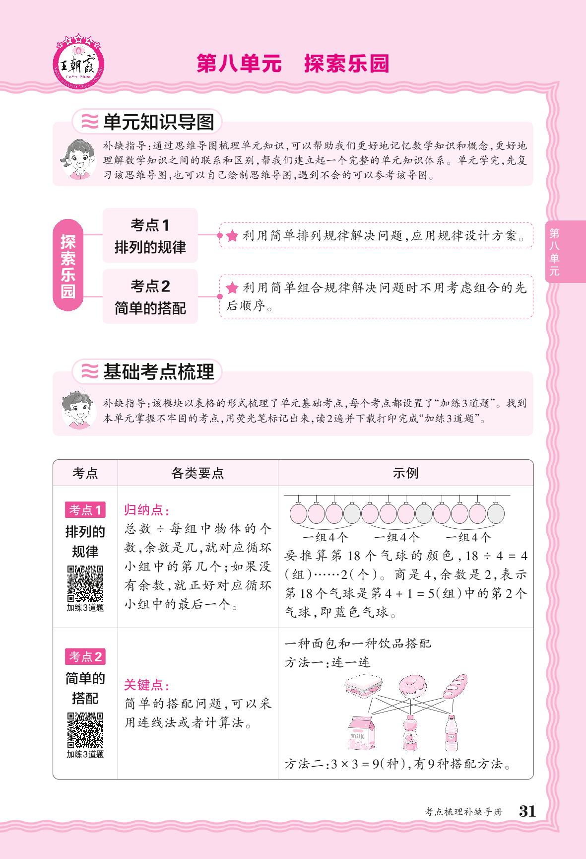 2024秋上册三年级数学冀教版 考点梳理补缺手册——第八单元 探索乐园