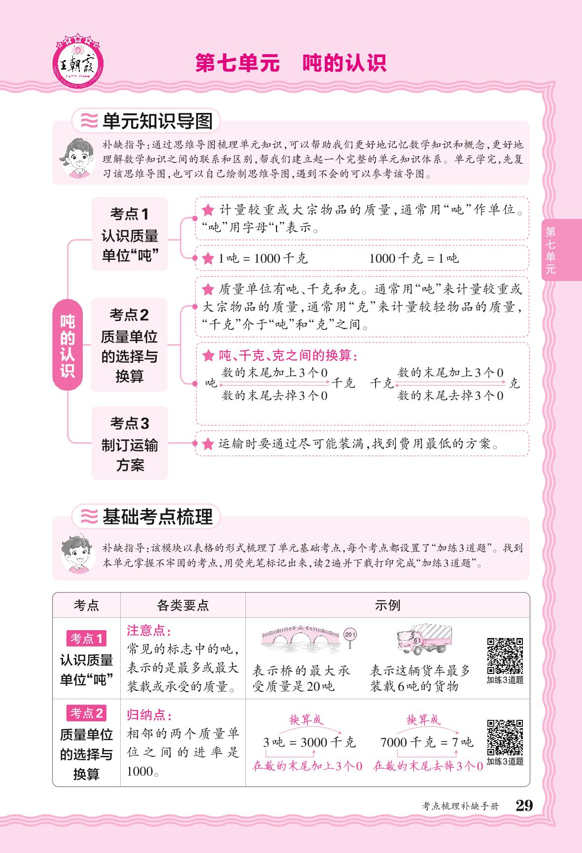 2024秋上册三年级数学冀教版 考点梳理补缺手册——第七单元 吨的认识
