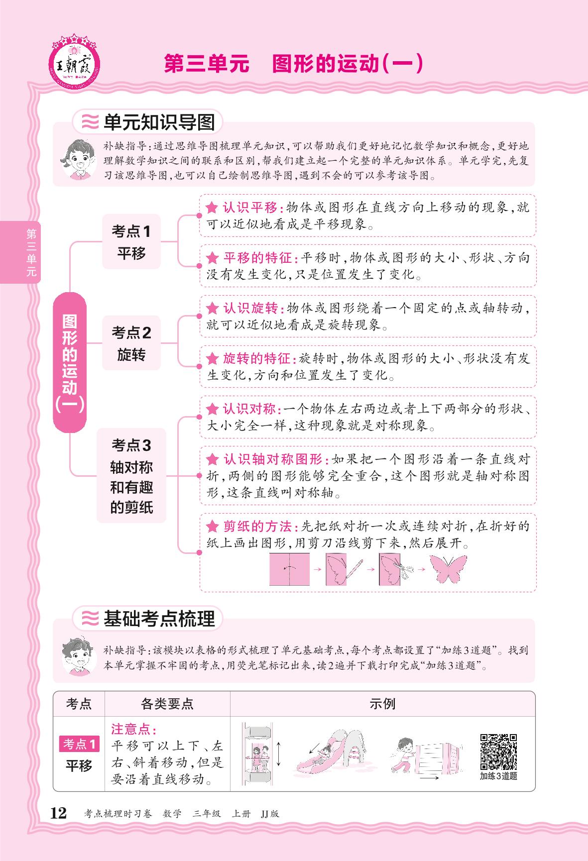 2024秋上册三年级数学冀教版 考点梳理补缺手册——第三单元 图形的运动(一)