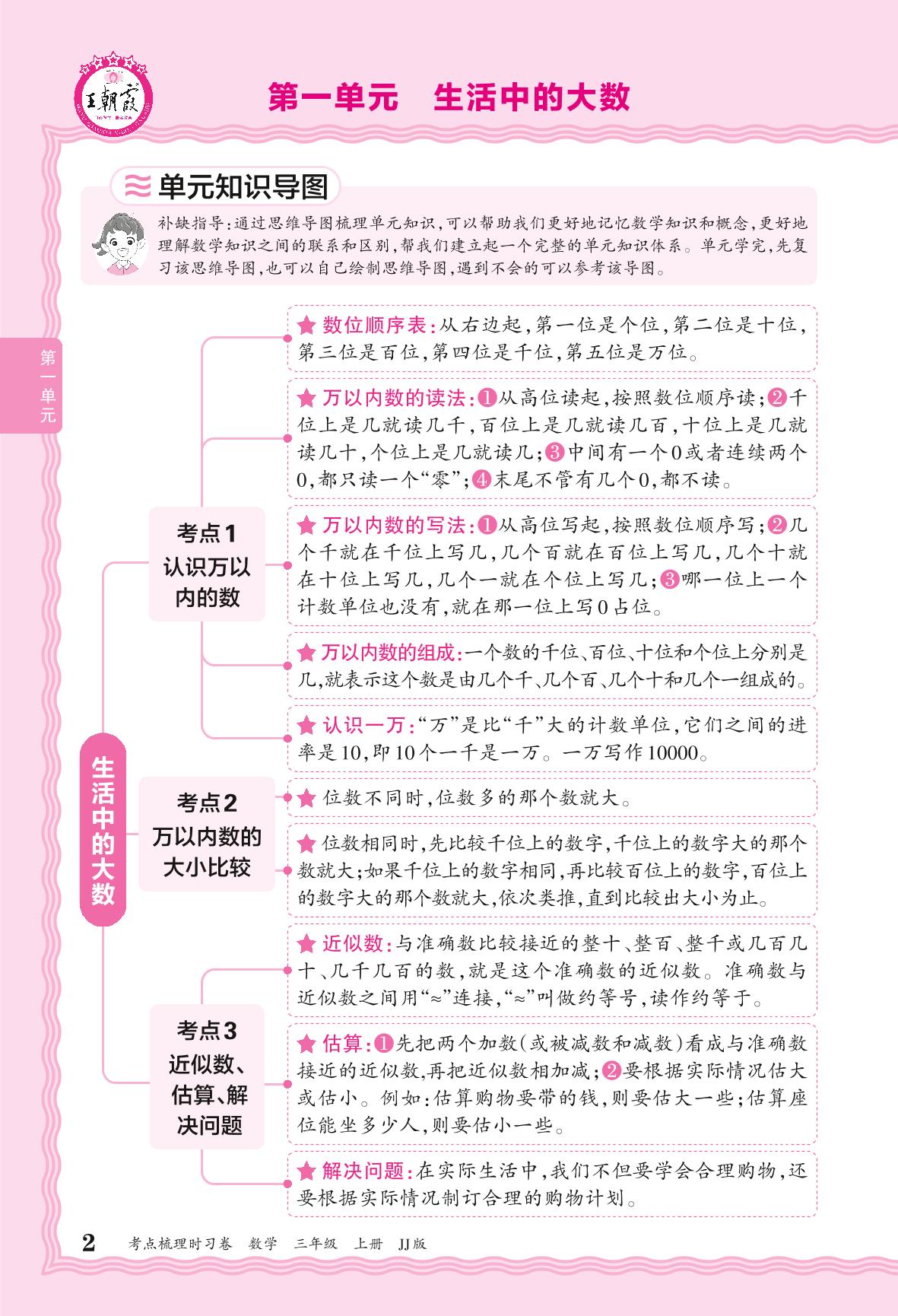 2024秋上册三年级数学冀教版 考点梳理补缺手册——第一单元 生活中的大数