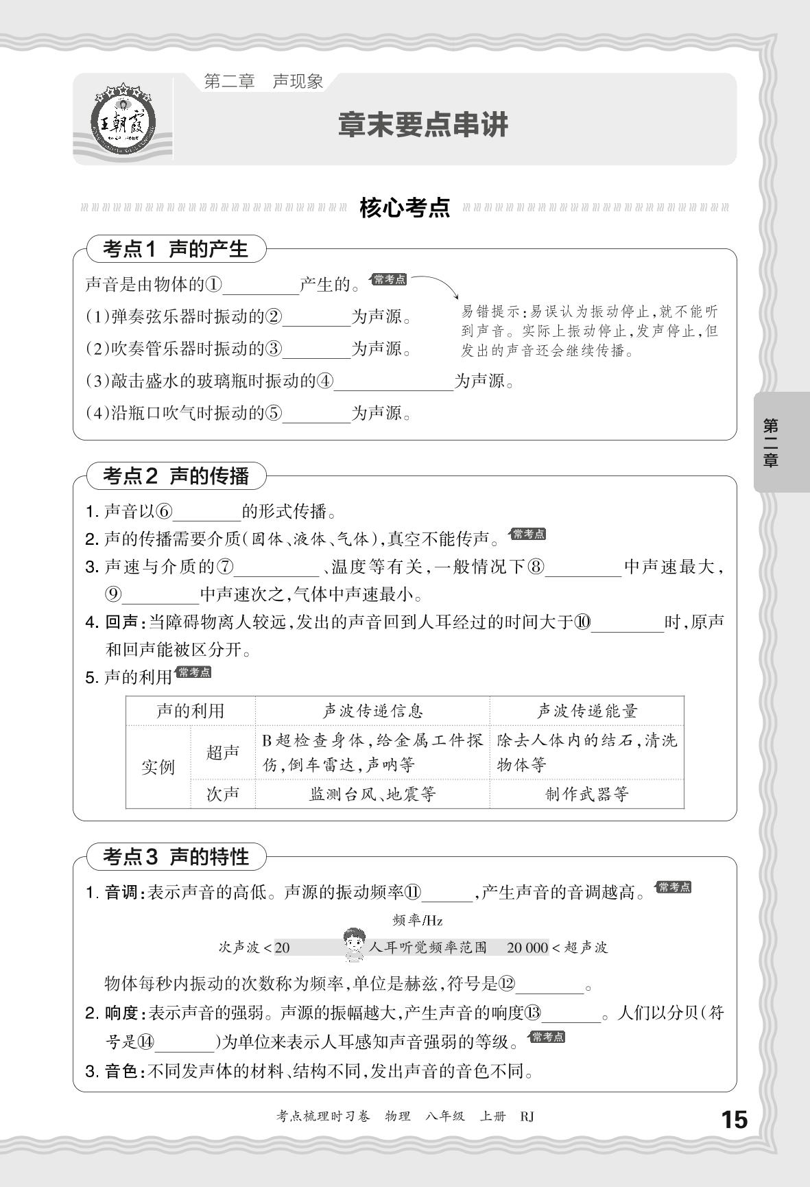 2024秋上册八年级物理人教版(2024) 第二章 章末要点串讲