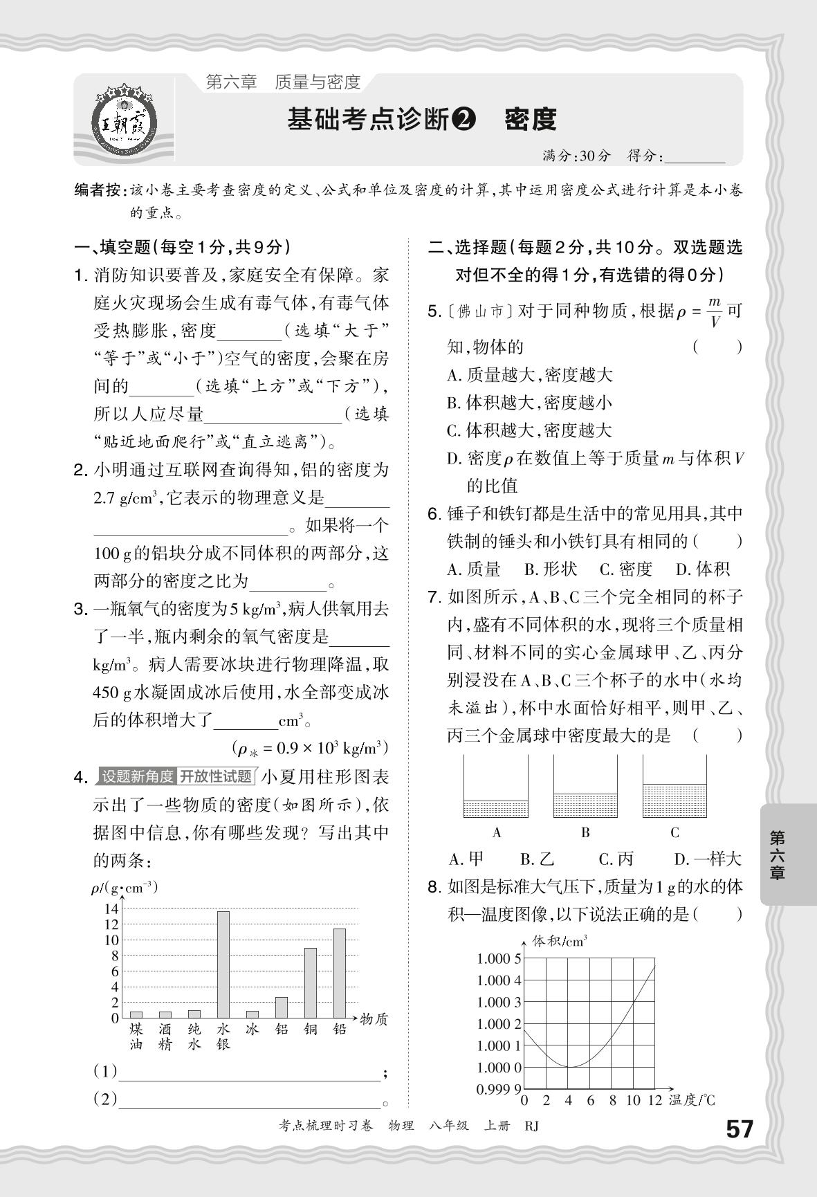 2024秋上册八年级物理人教版(2024) 第六章 基础考点诊断2 密度