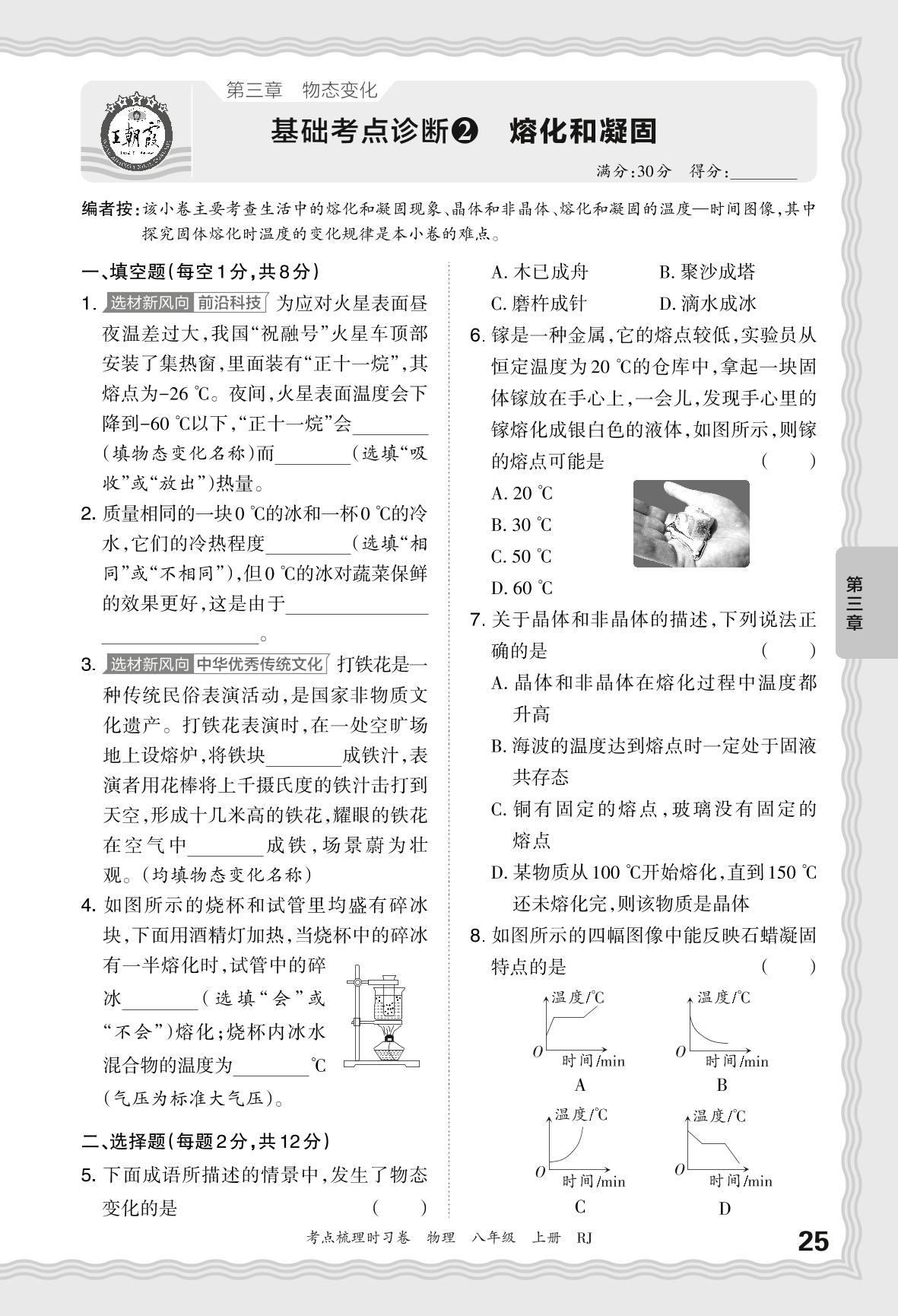 2024秋上册八年级物理人教版(2024) 第三章 基础考点诊断2 熔化和凝固