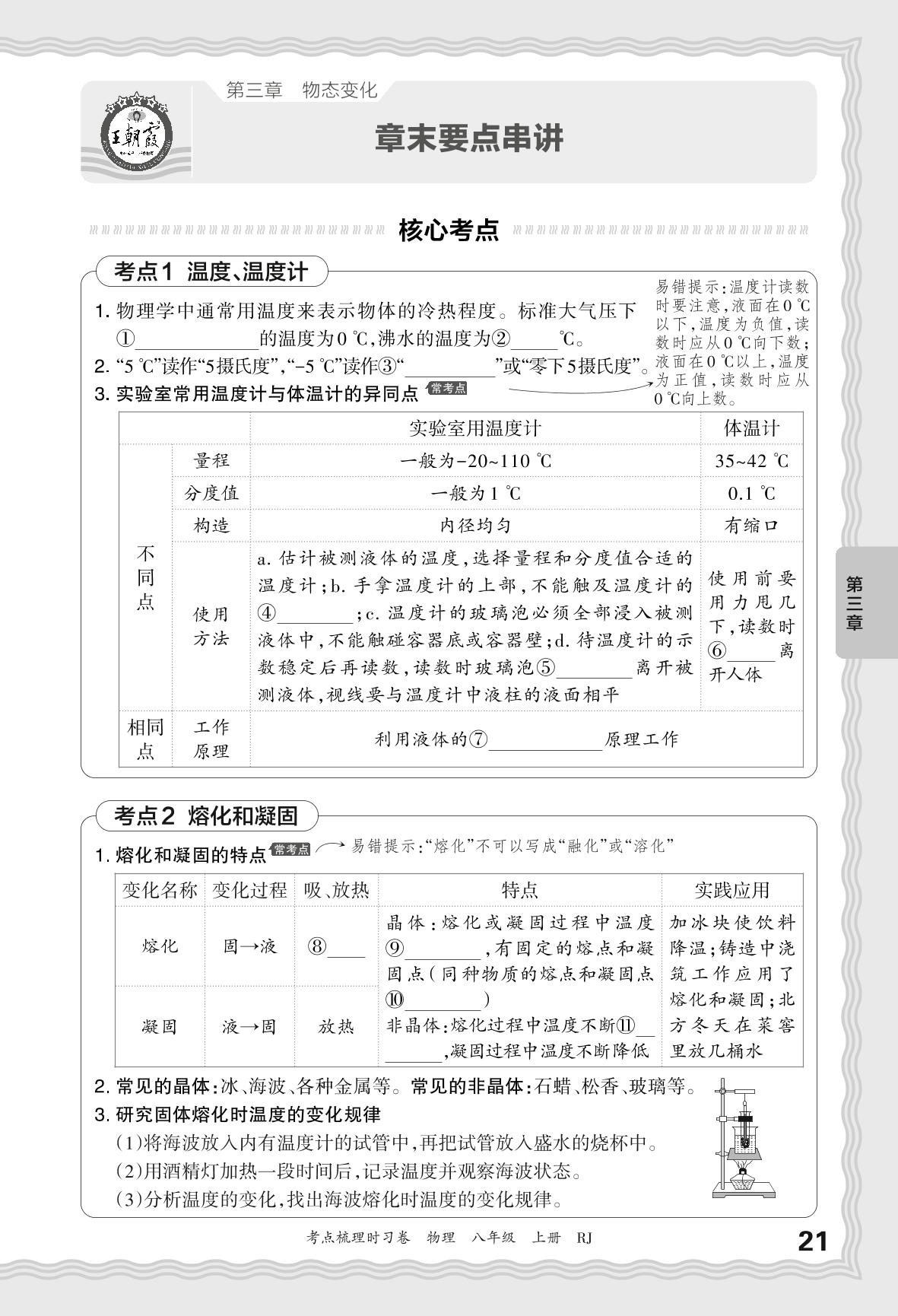 2024秋上册八年级物理人教版(2024) 第三章 章末要点串讲