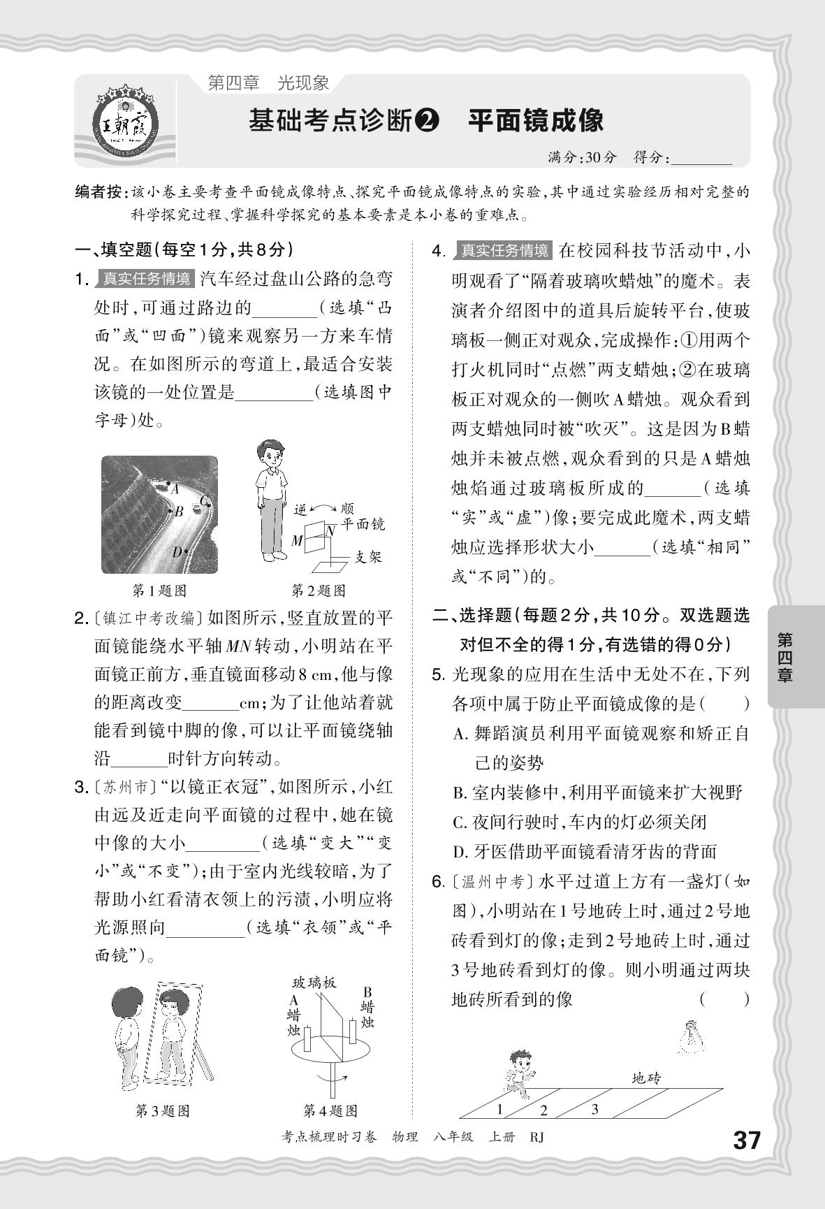 2024秋上册八年级物理人教版(2024) 第四章 基础考点诊断2 平面镜成像